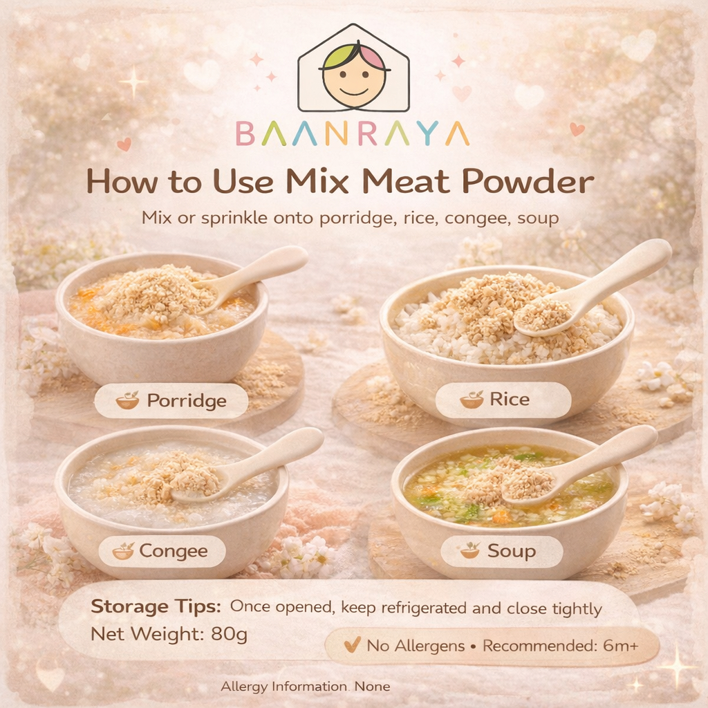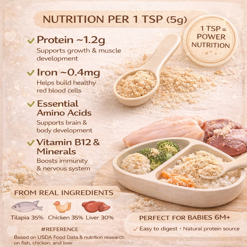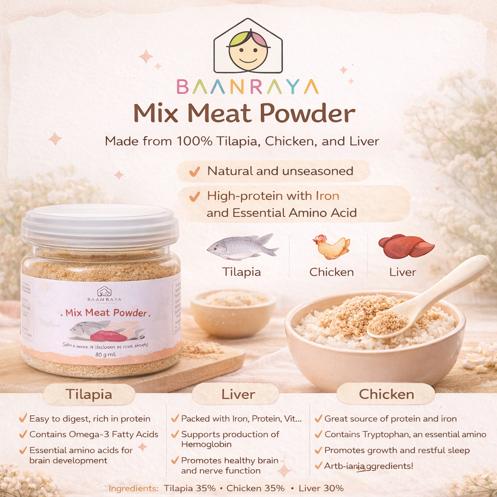 เนื้อสัตว์รวมบดผง โปรตีนสูง เด็ก6เดือน+ ปลานิล ไก่ ตับ บดละเอียด โรยข้าว โจ๊ก BLW ย่อยง่าย ไม่มีผงชูรส Baan Raya