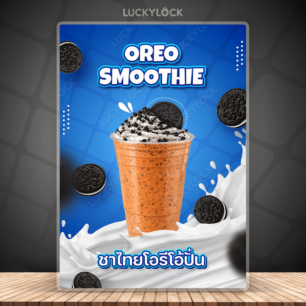 ป้ายเมนูโอรีโอ้ปั่น ป้ายโปสเตอร์สำหรับตกแต่งร้าน คาเฟ่ แบบเคลือบแข็งพร้อมใช้งาน