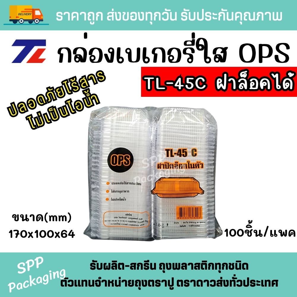 TL กล่องใสOPS เกรดA TL-45C ฝาล็อคได้ ใส่ขนม สลัดโรล ใส่ร้อนได้ไม่เป้นไอน้ำ แพค100ชิ้น