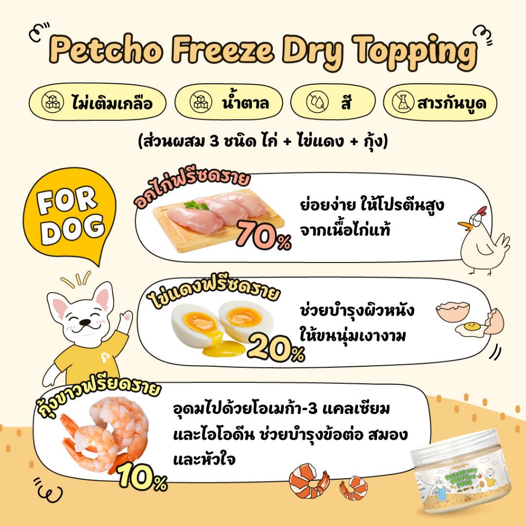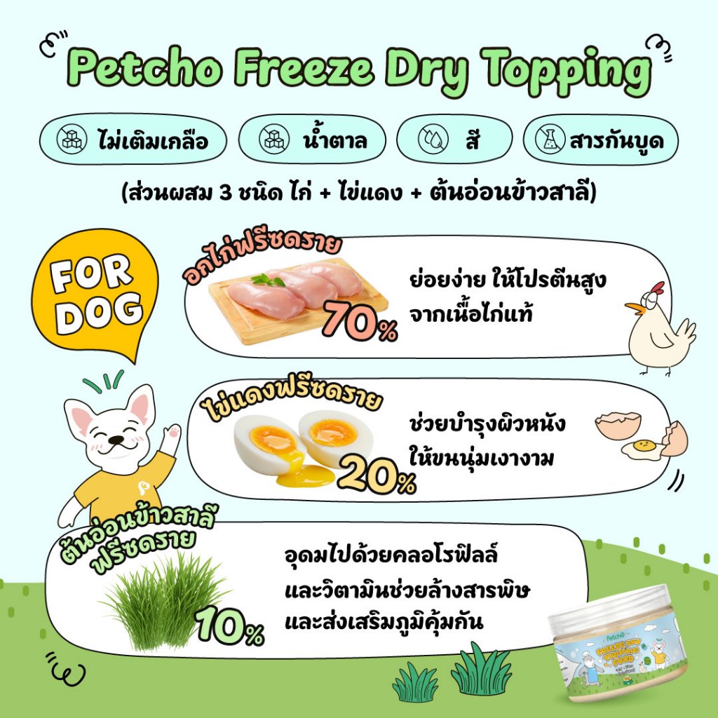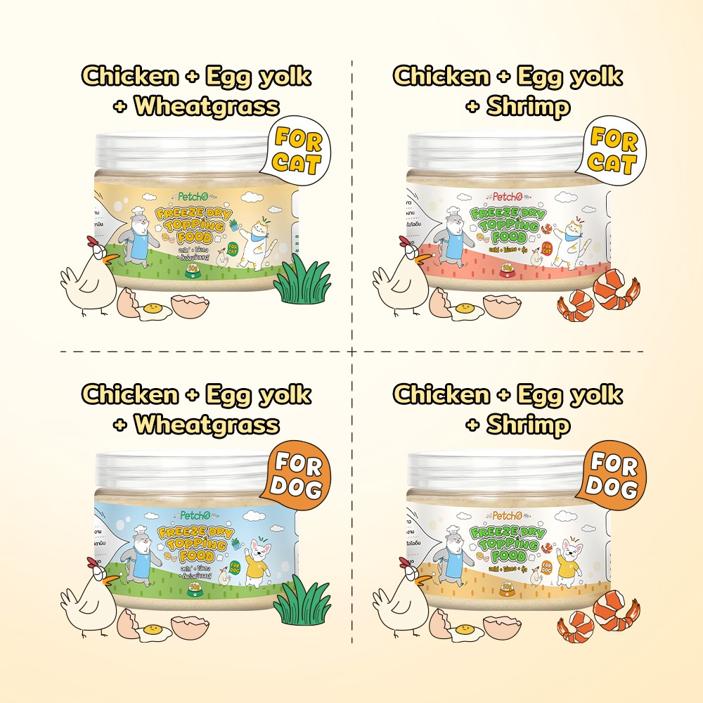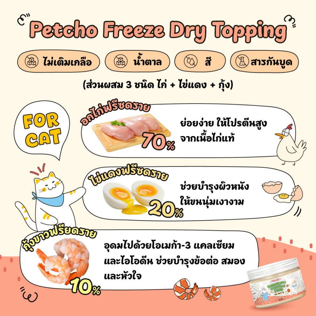 Petcho ผงโรยอาหาร กลิ่นหอม เพิ่มความอร่อย เสริมโปรตีน ผงโรยข้าวแมว ปราศจากเกลือ และสารกันบูด