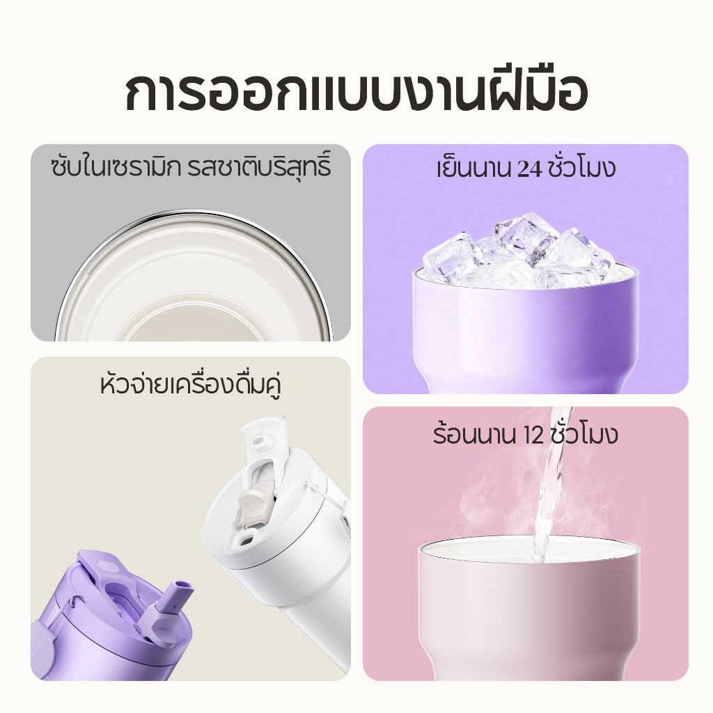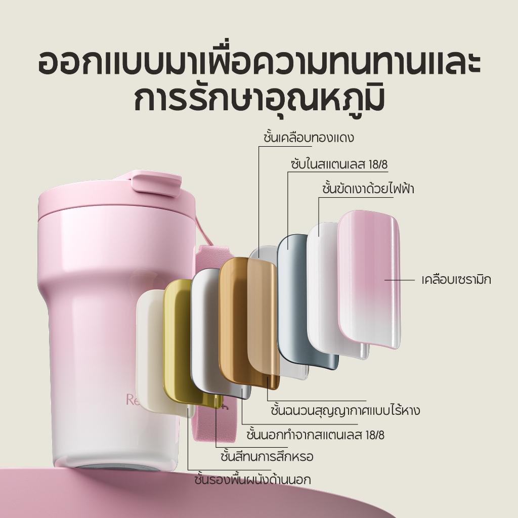 Redchef แก้วกาแฟเซรามิกขนาด 500 มล./17 ออนซ์ พร้อมหลอดดูด สำหรับเก็บความร้อนและความเย็น