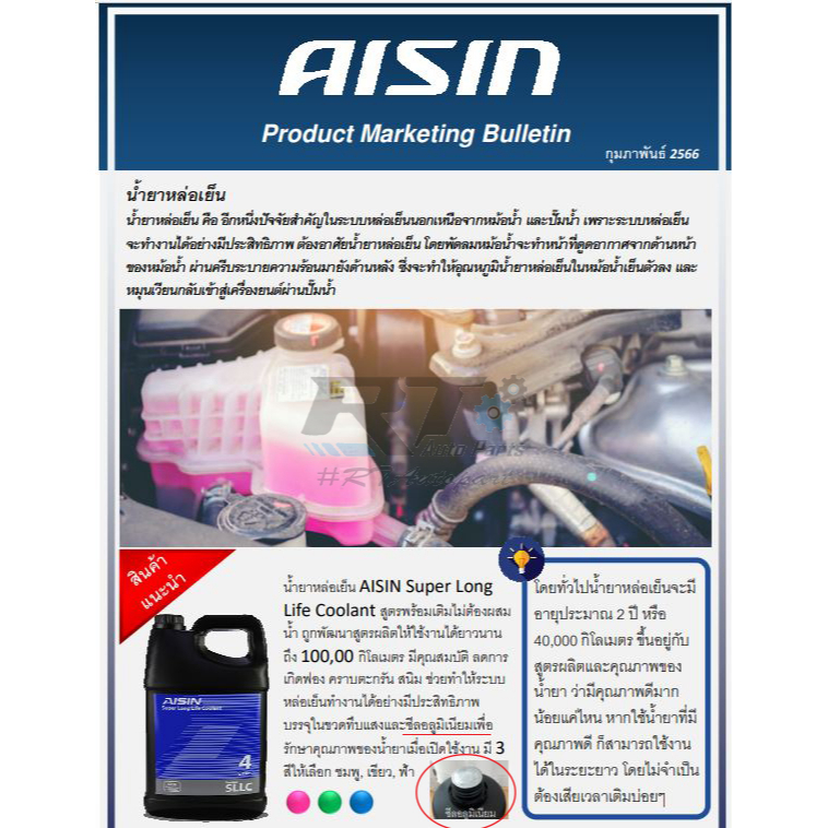 น้ำยาหม้อน้ำ(ขนาดยกลัง ) ไอซิน Aisin ขนาด สีชมพู / เขียว / ฟ้า Super Long life Coolant ขนาด 4 ลิตร / น้ำยาหล่อเย็น