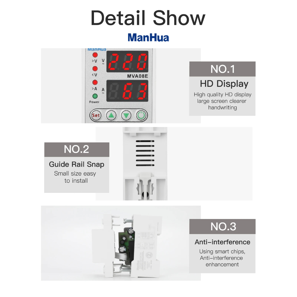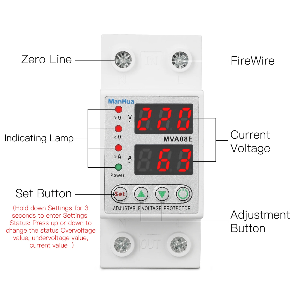 อุปกรณ์ป้องกันไฟเกิน ไฟตก 40A/63A 220V กันไฟกระชาก จอแสดงค่าแม่นยำ รีเซ็ตอัตโนมัติ ป้องกันเครื่องใช้ไฟฟ้าเสียหาย