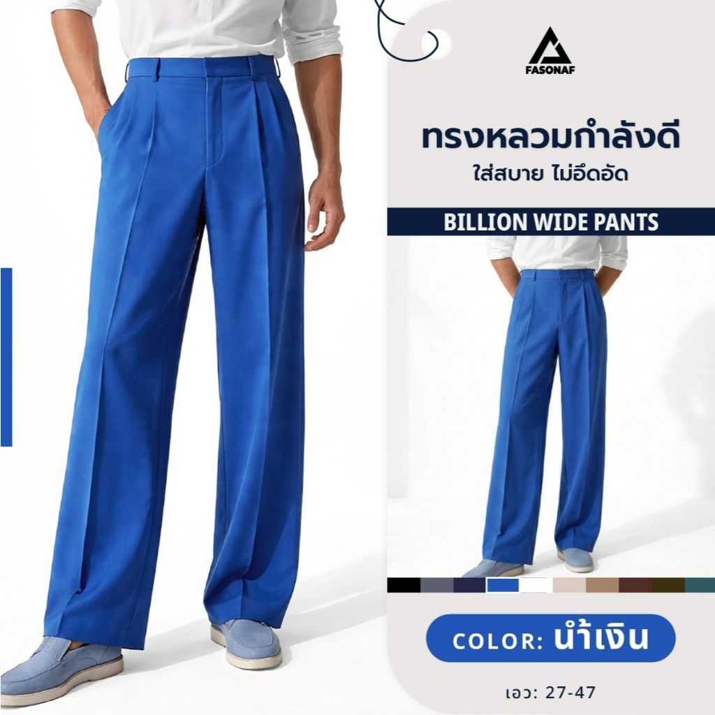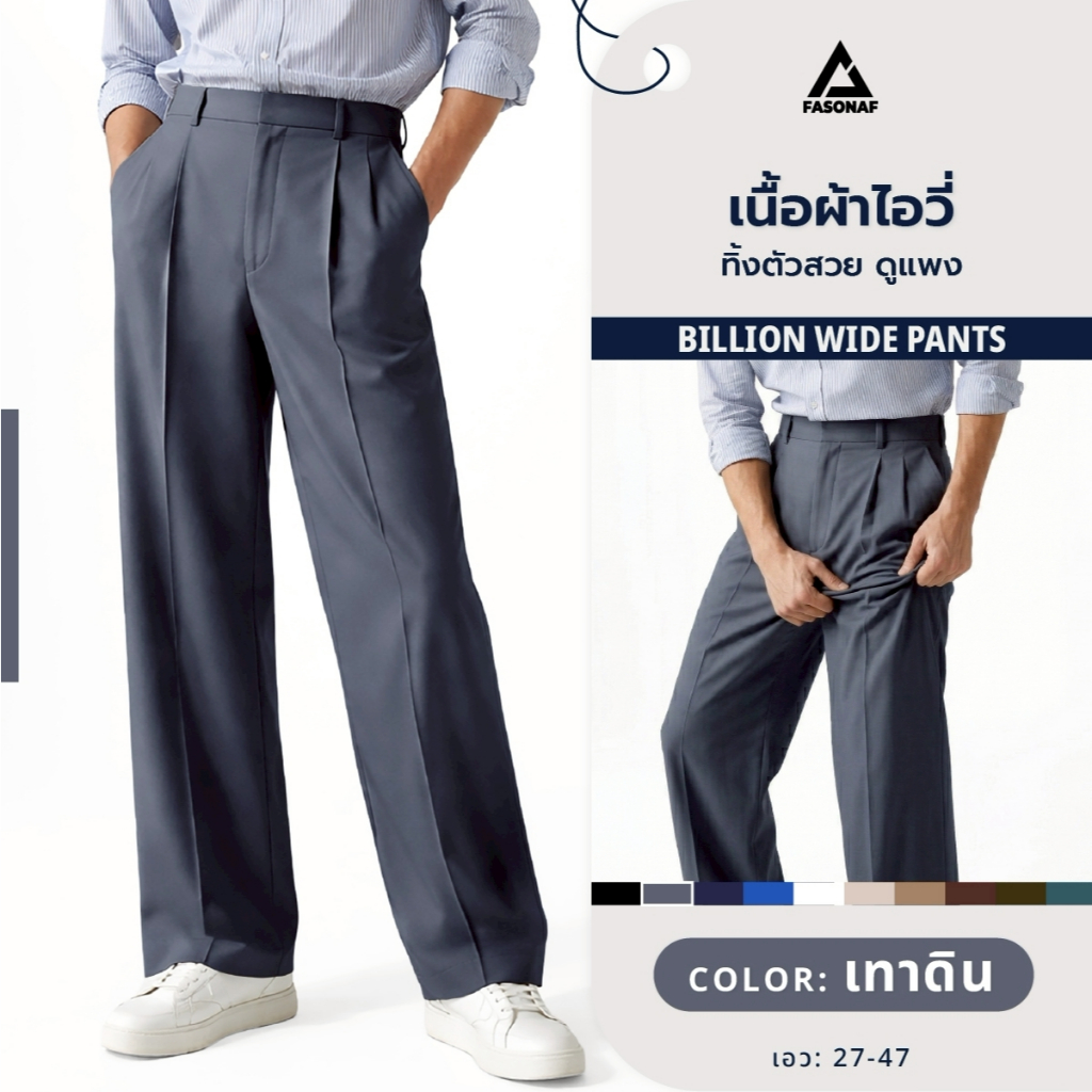 Billion wide ดีไซน์เรียบหรู ผ้านุ่ม ใส่สบาย ไม่อึดอัด จับจีบด้านหน้า 2จีบ ใส่ได้ทุกโอกาสแมทช์ได้ทั้งลุคทำงาน และลุคเท่