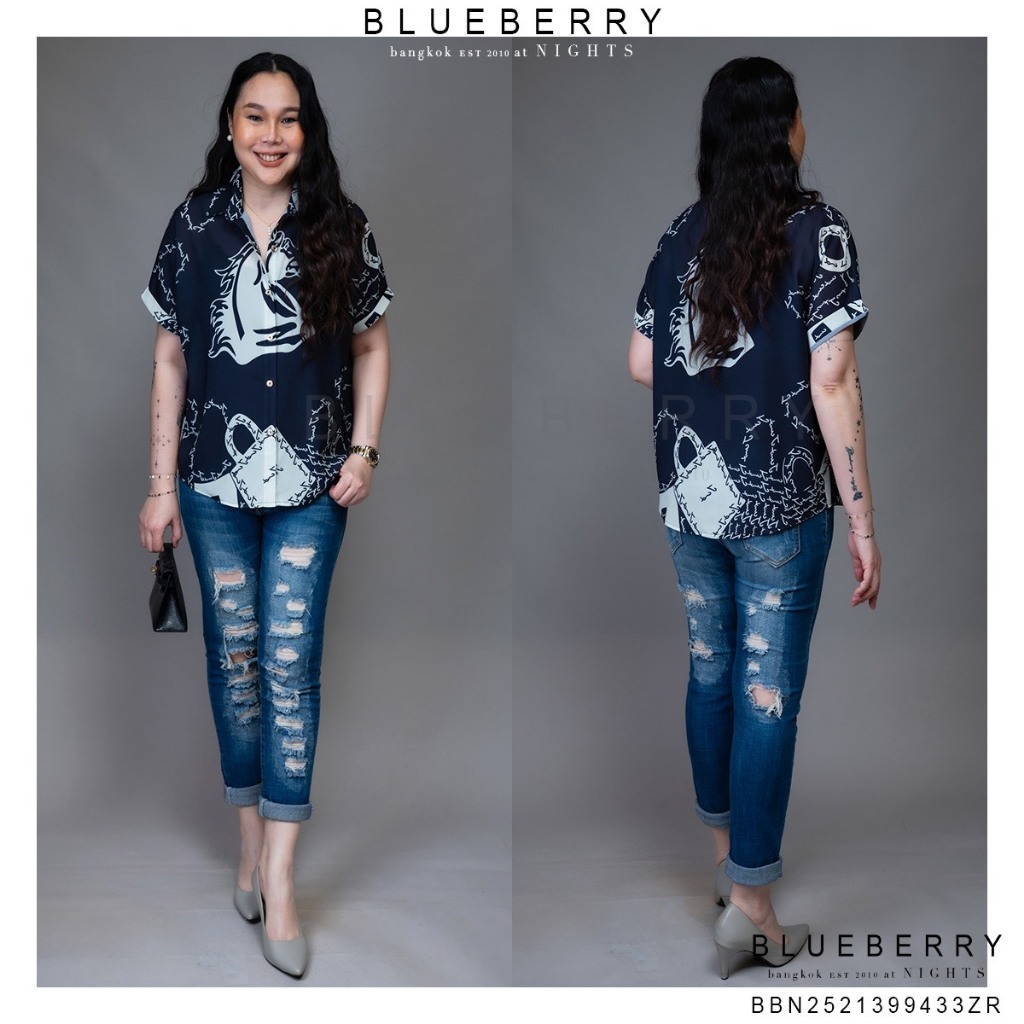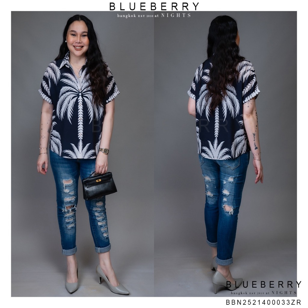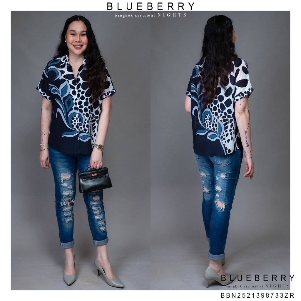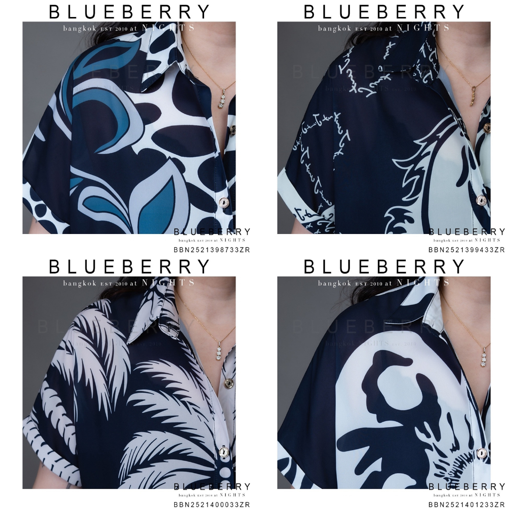BLUEBERRY NIGHTS L4333 เสื้อเชิ้ต แขนสั้น ผ้าโพลิเอสเตอร์เบลนด์พิมพ์ลายทั้งตัว