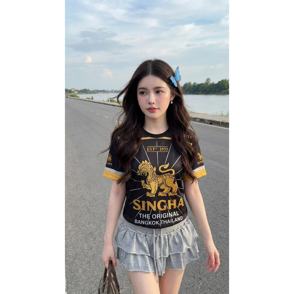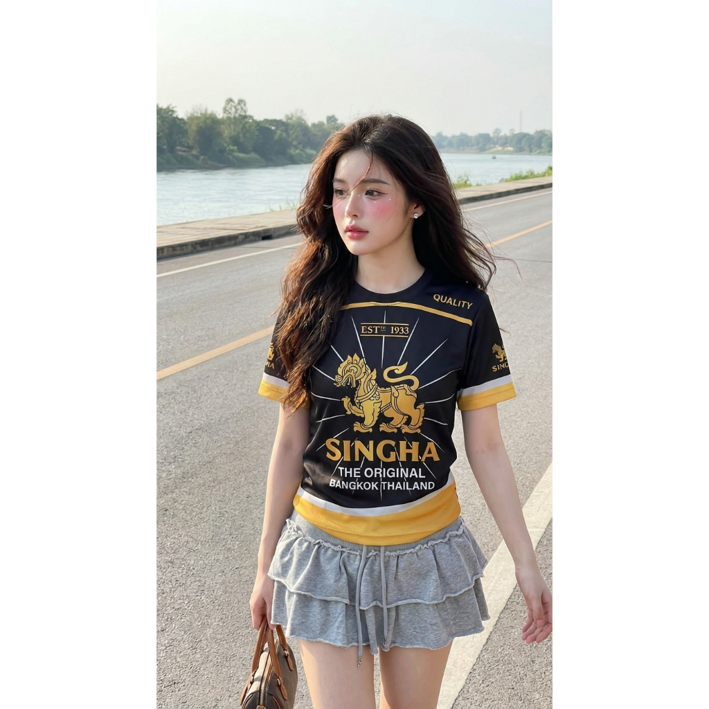 เสื้อคอกลมกีฬาสิงห์-ทองดำใหม่ N0-52ใส่สบายระบายอากาศผ้าไมโคร