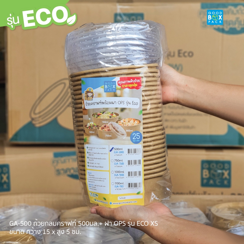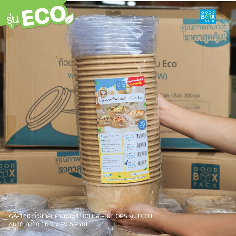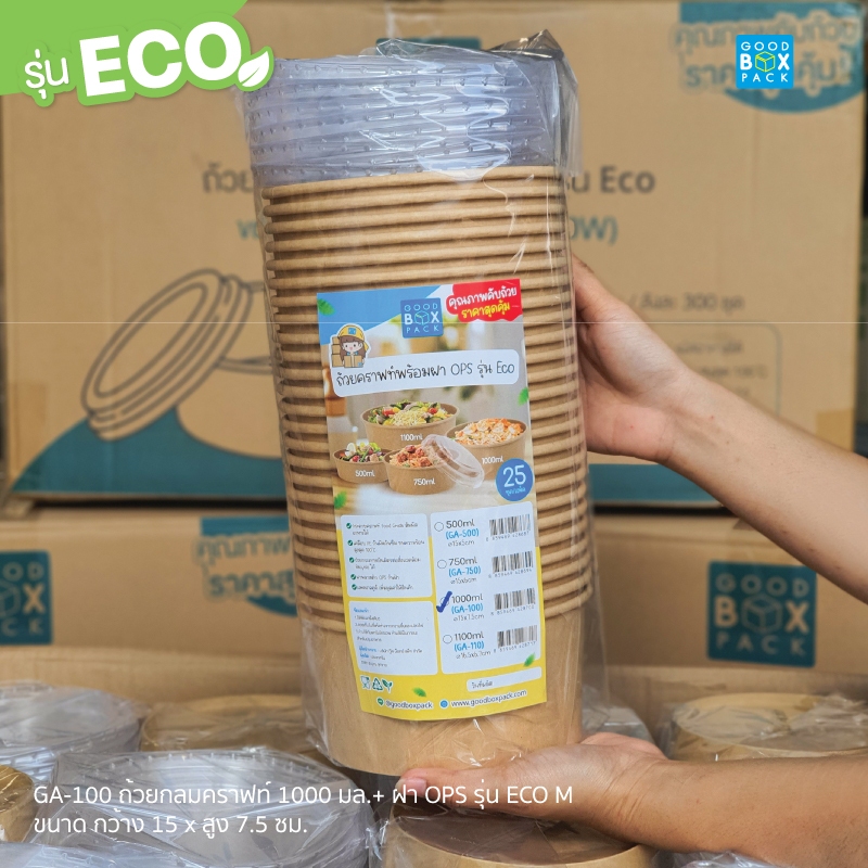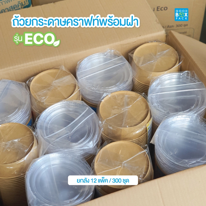 Goodboxpack (ยกลัง300ใบ) ถ้วยกลมคราฟท์ 500,750,1000,1100มล.+ฝาOPS รุ่นECO 1คำสั่งซื้อต่อ1ลัง