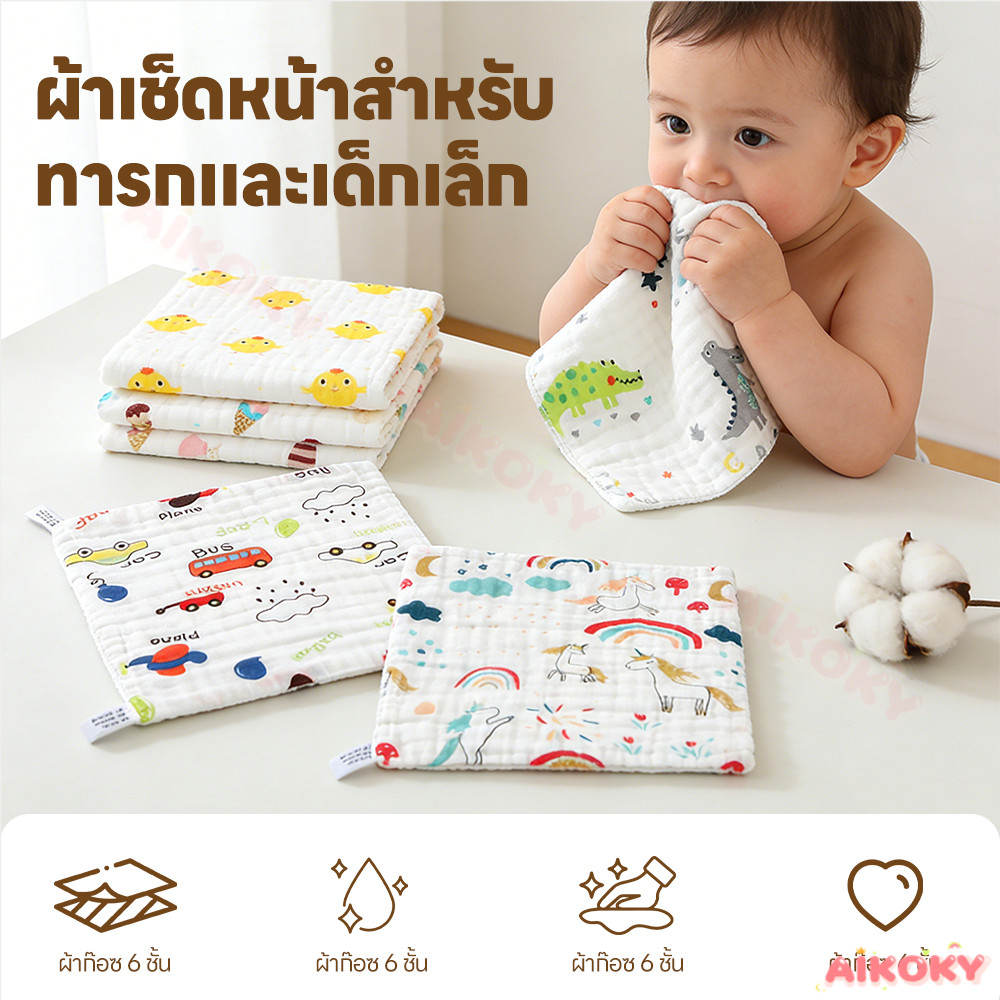 AIKOKY ผ้าเช็ดหน้าเด็ก ผ้าเช็ดหน้าเด็กผ้าฝ้าย การดูดซึมน้ำและแห้งง่าย ผ้าเช็ดหน้าสาลู 25*25cm ผ้าเช็ดหน้า
