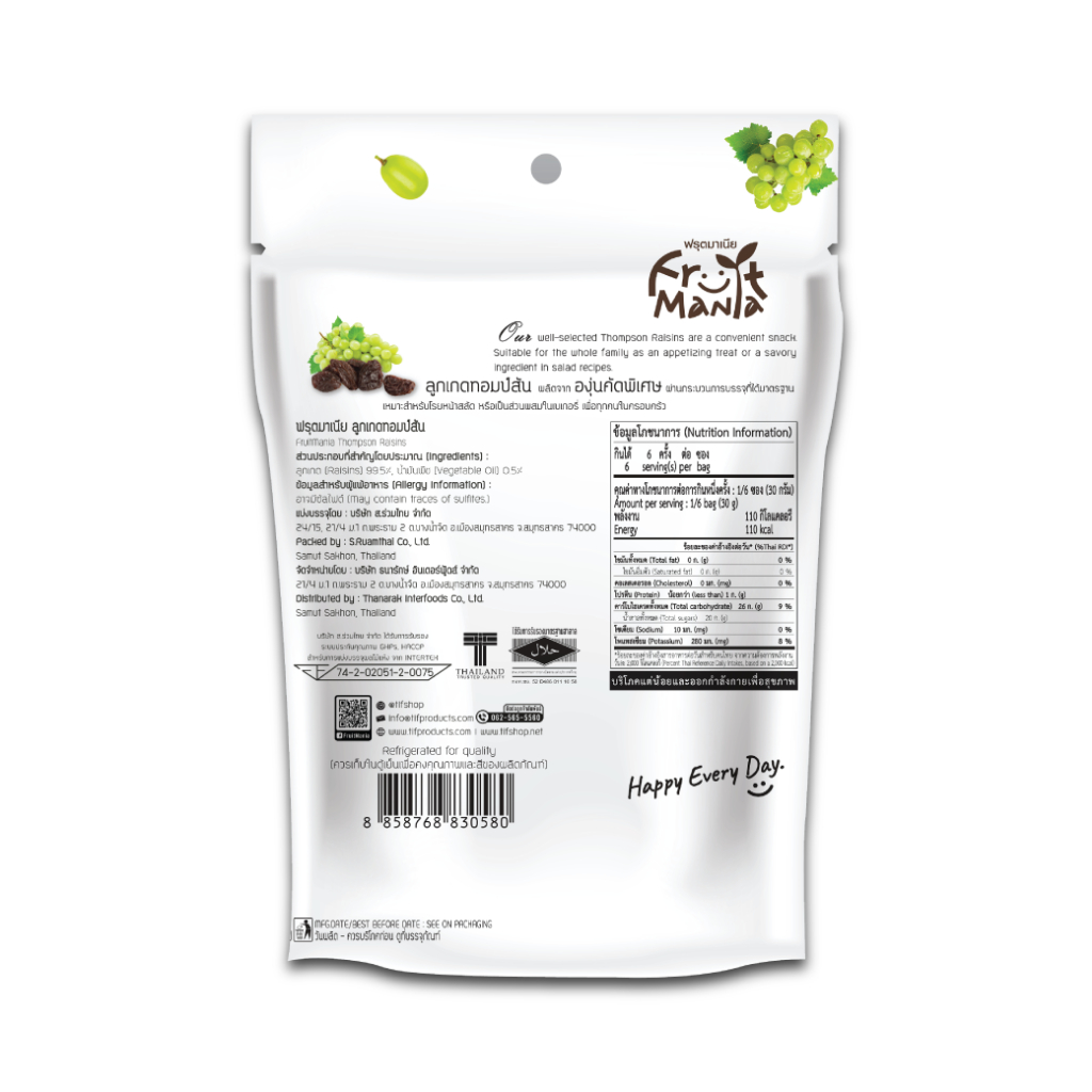 FruitMania ฟรุตมาเนีย ลูกเกดทอมป์สัน 180 กรัม Thompson Raisins