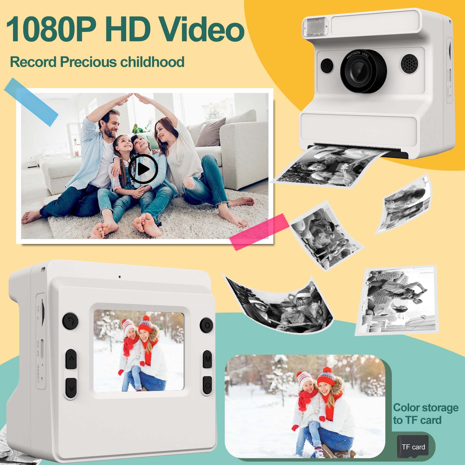 กล้องถ่ายภาพด่วนสําหรับเด็ก, กล้องดิจิตอลเซลฟี่รุ่นอัปเกรด, ของเล่นถ่ายภาพโพลารอยด์, เครื่องบันทึกวิดีโอ HD 1080P, ของขวัญคริสต์มาสและฮาโลวีนสําหรับเด็กหญิงและเด็กชาย