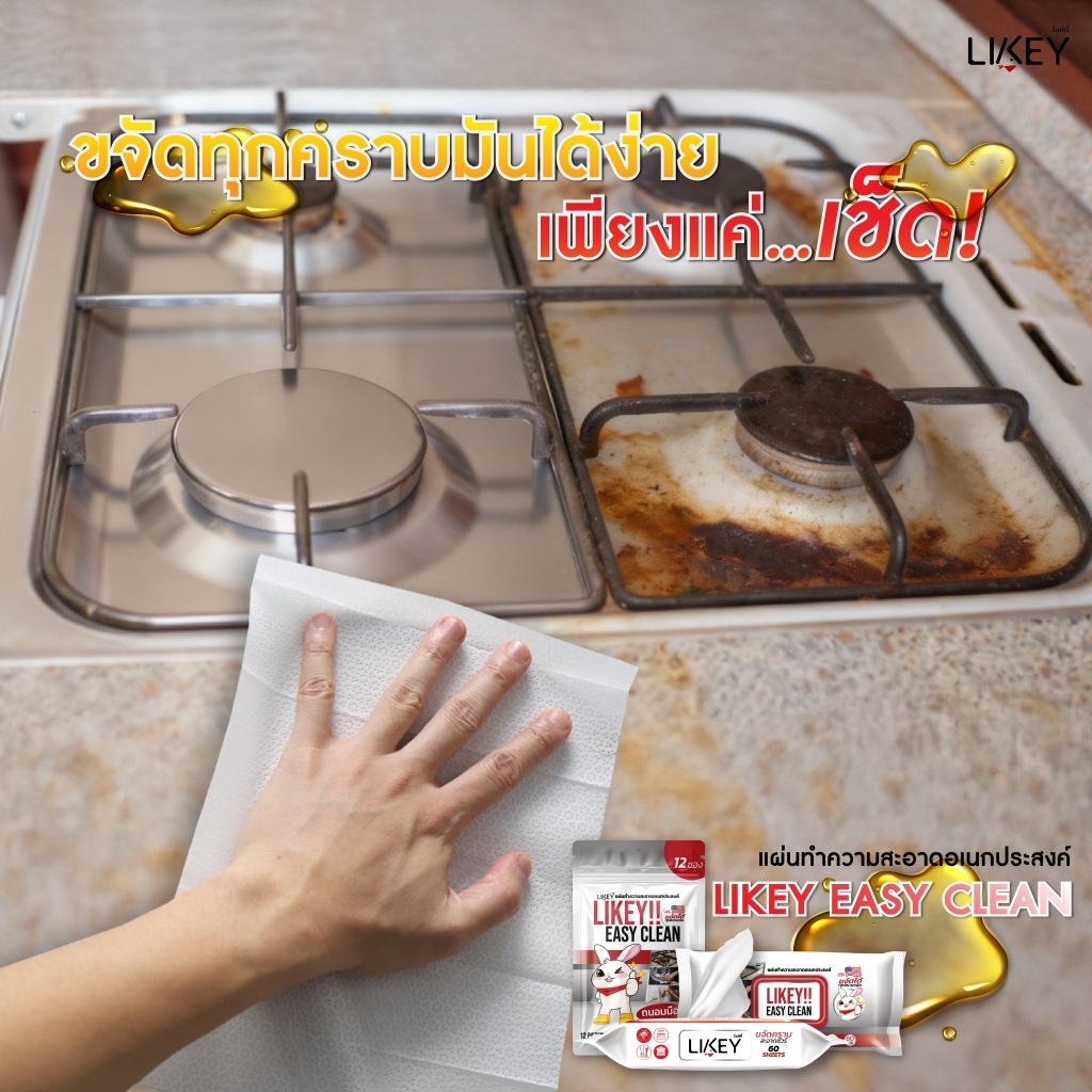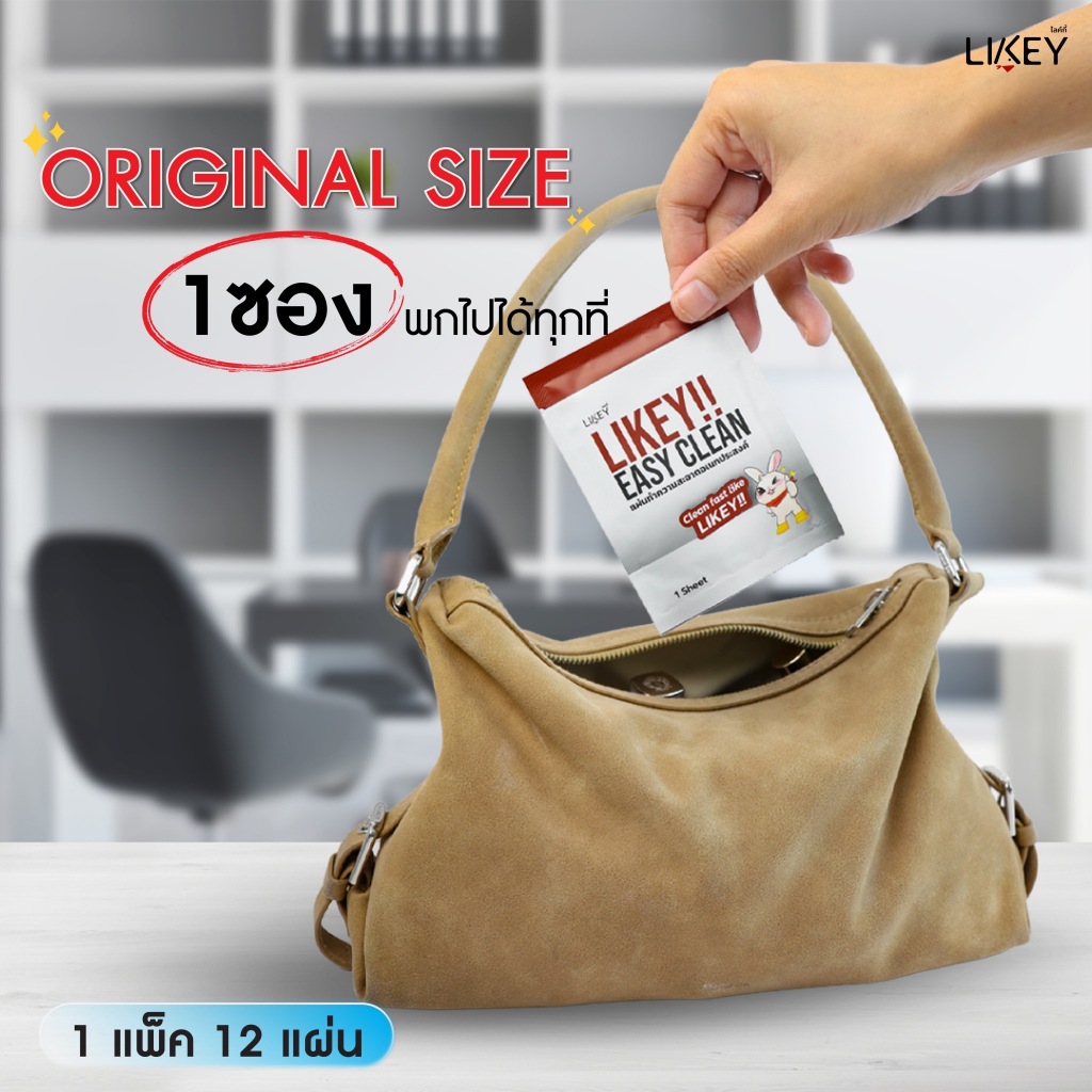 [Official] LIKEY ORIGINAL 1 แพ็กแบบซองซีล 12 ซอง พกพาสะดวก เช็ดได้ทุกที่ ทำความสะอาดคราบหนัก คราบมันได้จบในแผ่นเดียว กลิ
