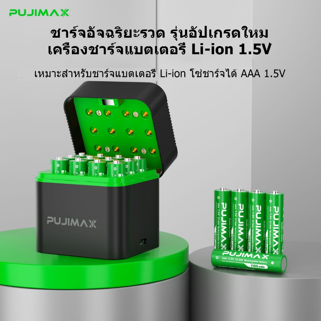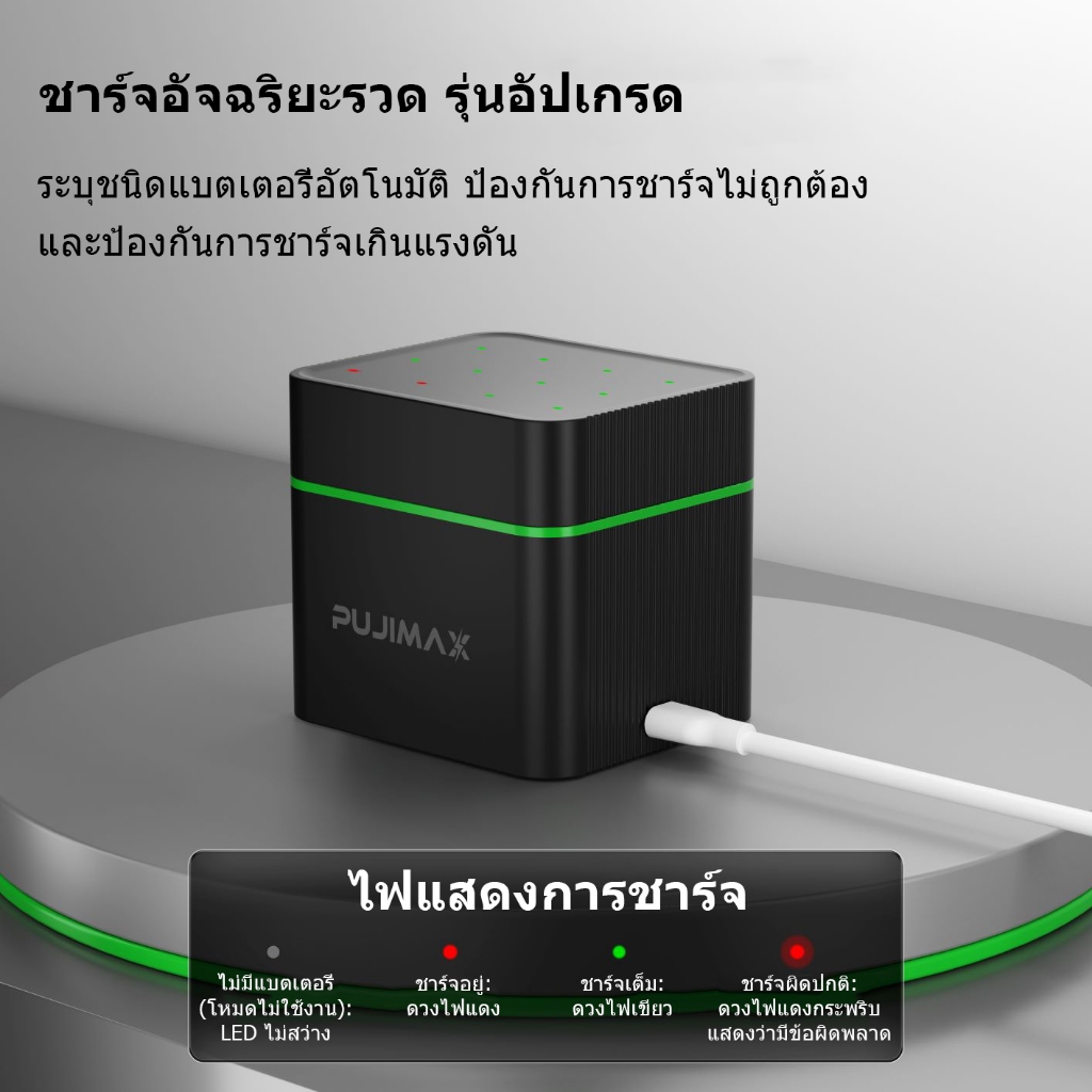 PUJIMAX เครื่องชาร์จถ่าน 12ช่อง รองรับ1.5V AAA ถ่านชาร์จLi-ion เช่น1100mWh ป้องกันชาร์จเกินอัตโนมัติ