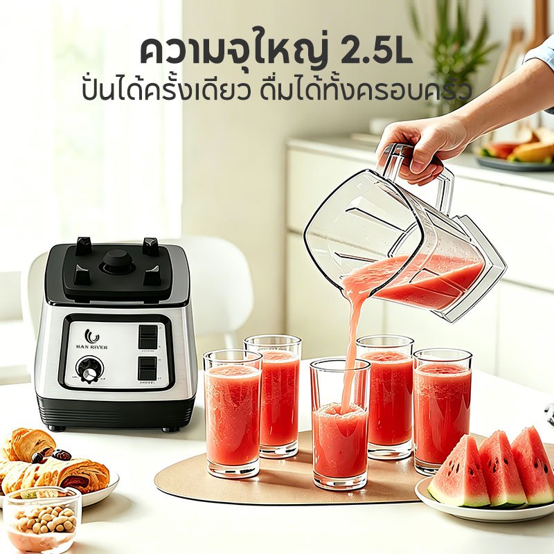 HAN RIVER เครื่องปั่นน้ำผลไม้ 2500ML น้ำแข็งบด 10 วินาที ใบมีดสแตนเลส 304 ทั้งแบบเปียกและแบบแห้ง