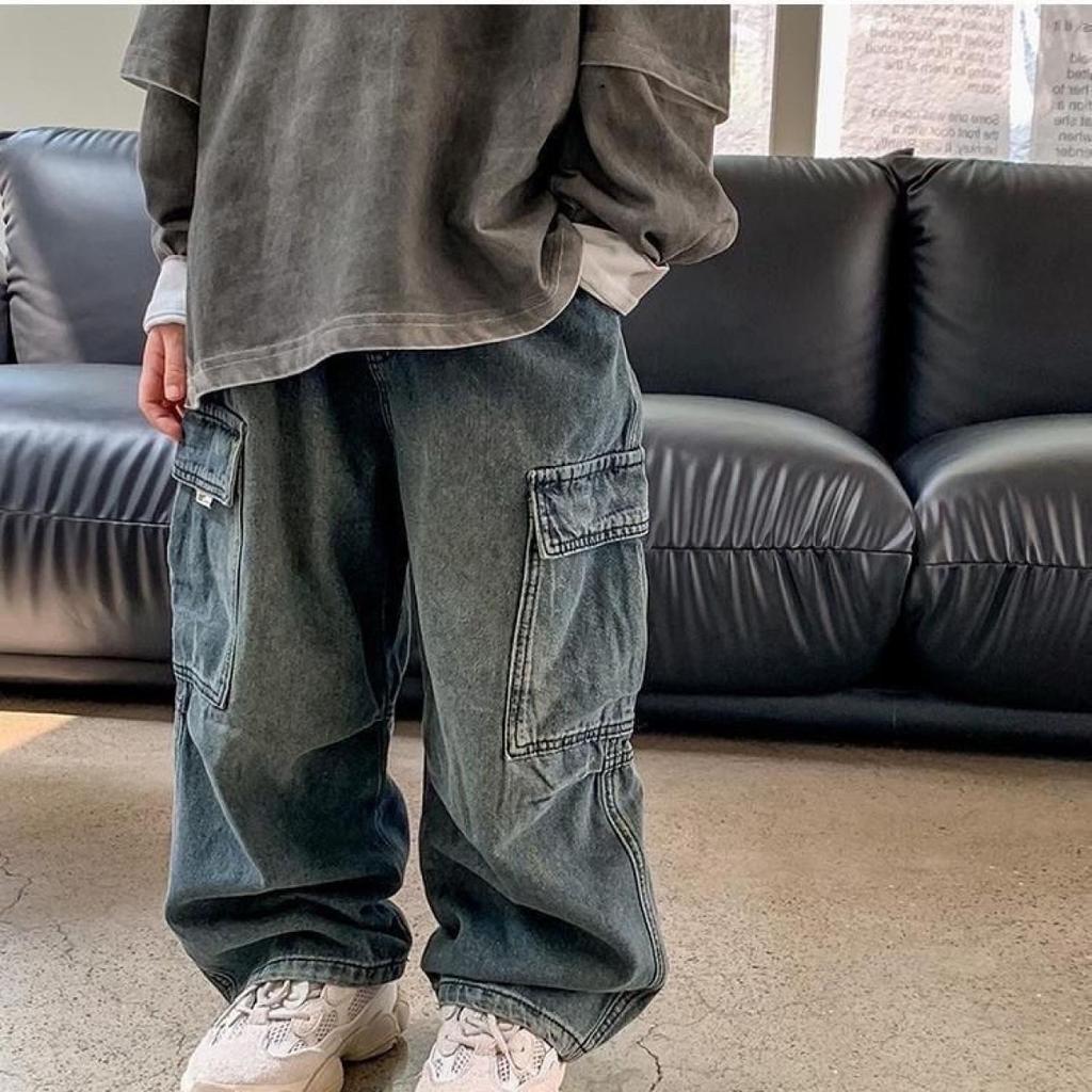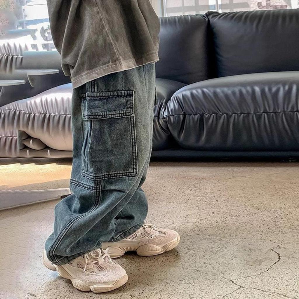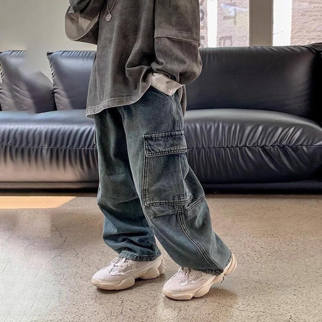กางเกงยีนส์คลาสสิกสำหรับเด็กชายและเด็กหญิง สไตล์ยอดนิยมและทันสมัย เนื้อผ้านุ่มสบาย ทรงหลวม กางเกงยีนส์เด็ก สไตล์สตรีทสุดเท่
