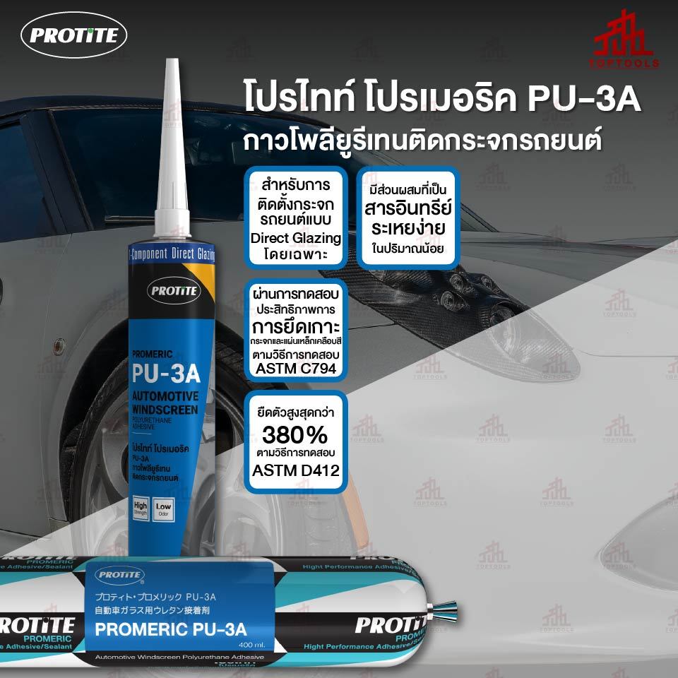 กาวพียูติดกระจกรถยนต์ไร้กลิ่น🚗 PROTITE Promeric PU-3A (310 มล) หลอดพลาสติก
