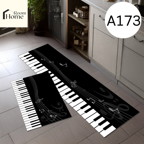 พรมเช็ดเท้า พรมห้องครัว เซ็ต 2 ชิ้น (ไร้ขอบ) โทนสีดำ มีกันลื่น ซักทำความสะอาดได้ พรมปูพื้น ห้องครัว พร้อมส่ง