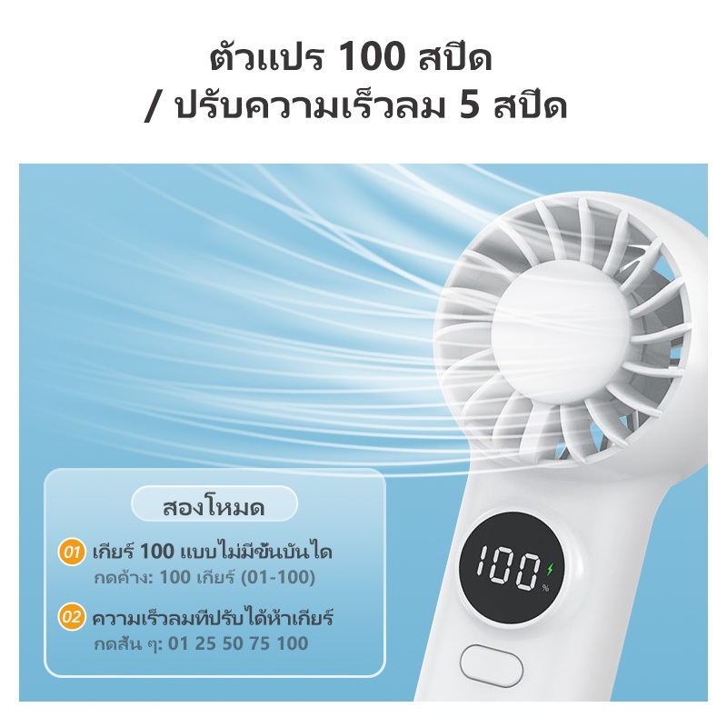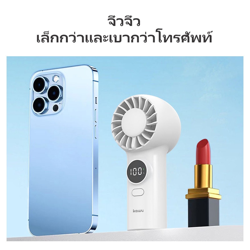 Kawu พัดลมมือถือ พกพา Mini ปรับความเร็วได้ 100 จอแสดงผลดิจิตอลอัจฉริยะ ลมแรง ชาร์จ USB