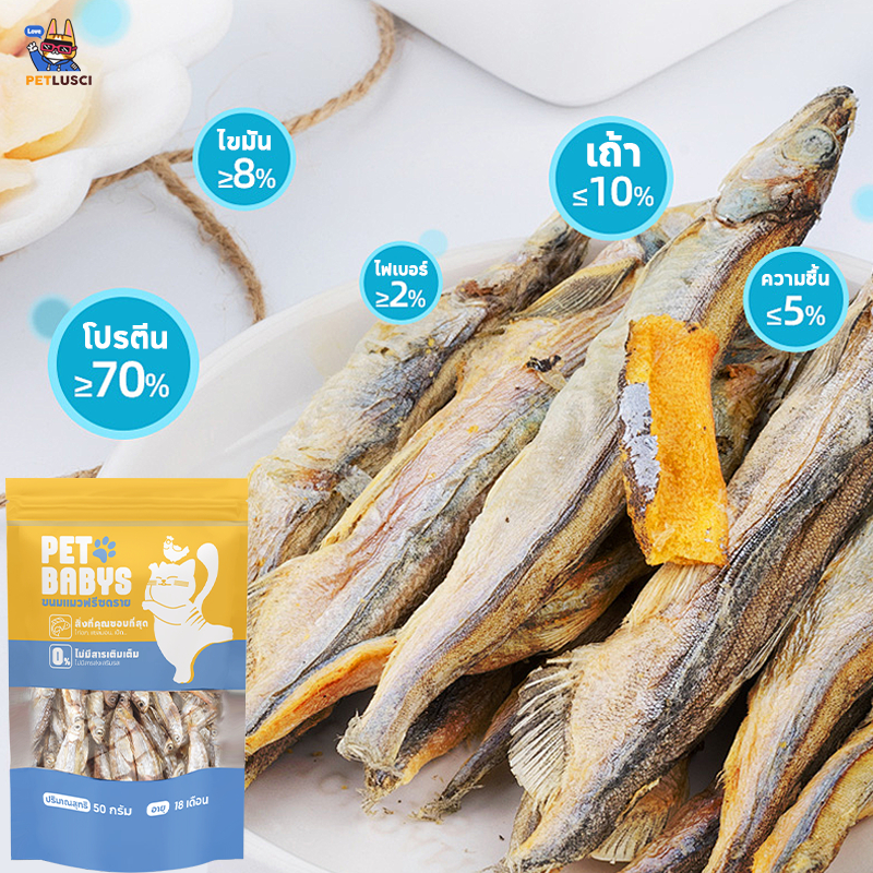 PETLUSCI® ขนมแมว ปลาแมว 50กรัม โปรตีนสูง ไม่เค็ม ปลอดภัยต่อไต สดใหม่ทุกวัน ไม่ใส่สารกันเสีย