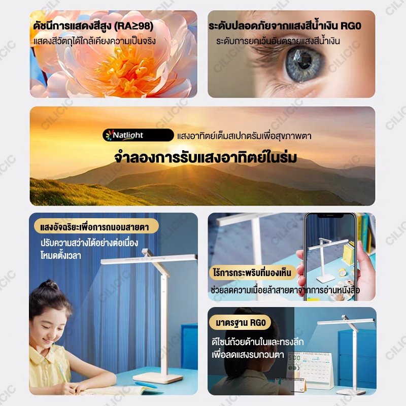 Cilicic โคมไฟตั้งโต๊ะ LED ปรับแสงได้3สี ดูแลสายตา สมาร์ท มีหลายฟังก์ชั่น โคมไฟอ่านหนังสือ