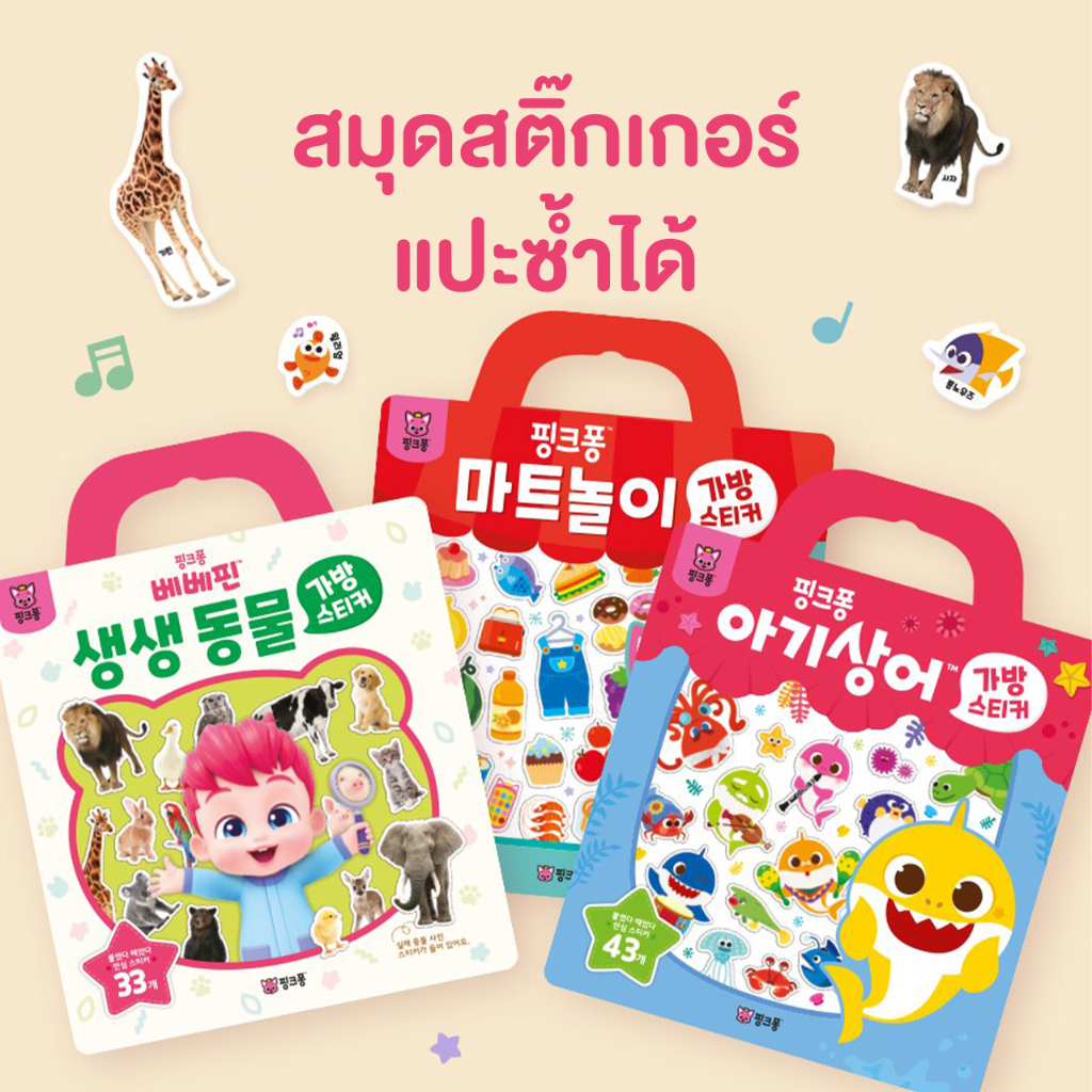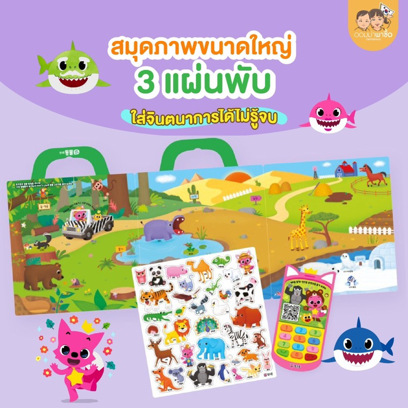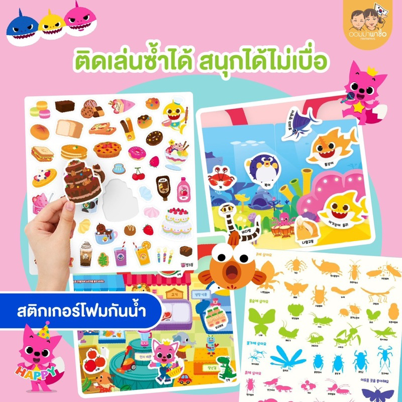 Pinkfong สมุดสติ๊กเกอร์ ลายใหม่ 2026 แปะซ้ำได้เรื่อยๆ กันน้ำ พร้อมโทรศัพท์การ์ดเพลง ลายเบบี้ชาร์ค
