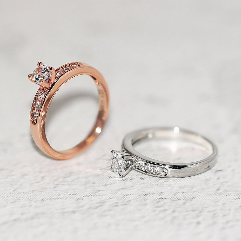 Zhouyang(โจวหยาง)แหวนสำหรับผู้หญิงคลาสสิกสไตล์ 4 กรงเล็บ คิวบิกเซอร์โคเนีย กุหลาบสีทองแต่งงานหมั้นของขวัญเครื่องประดับแฟชั่น R592 R682
