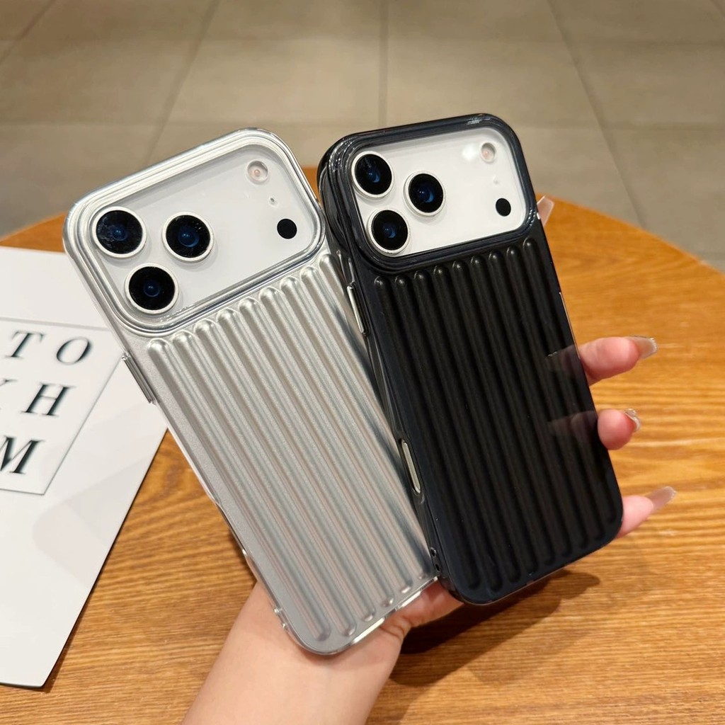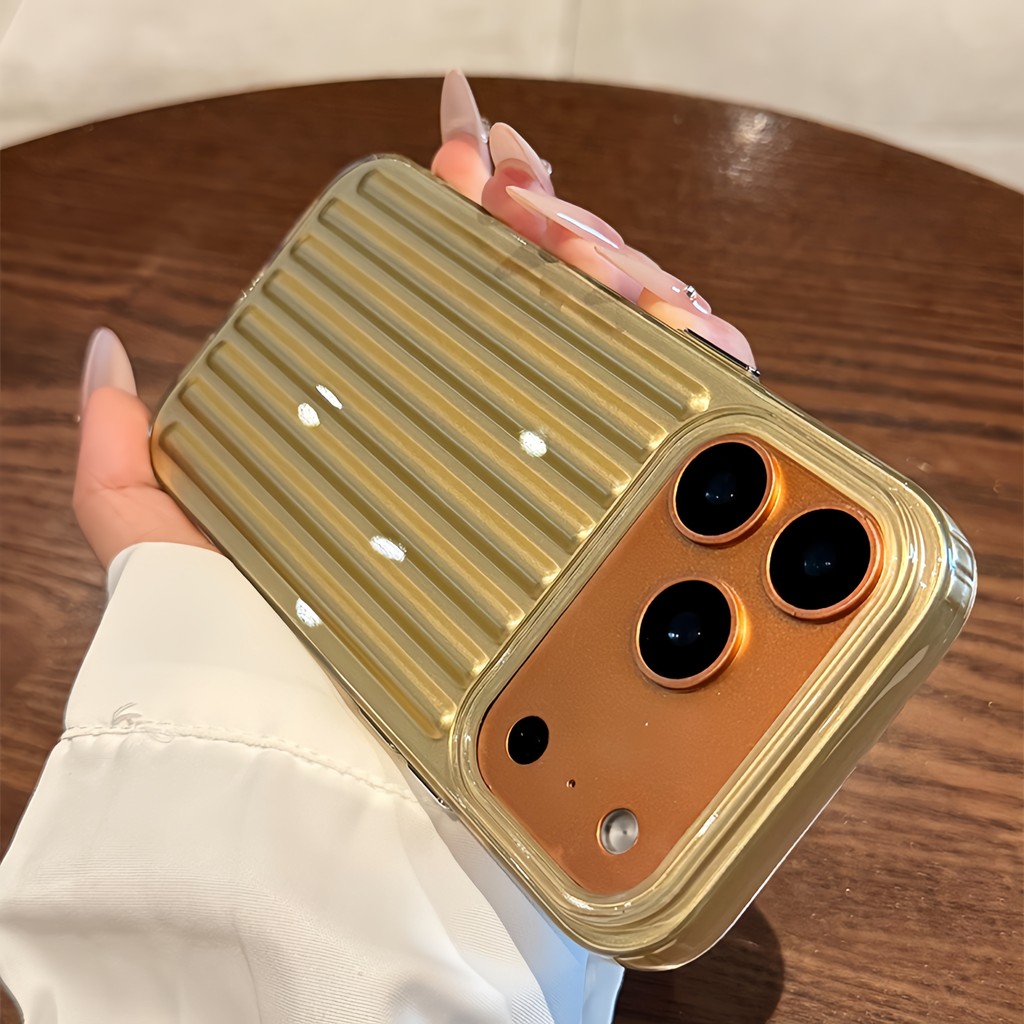 Electroplated เงินสีชมพูกระเป๋าเดินทางซิลิโคนอ่อนนุ่มเคสโทรศัพท์สําหรับ iPhone 17Promax 17Pro 12 13 14 15 Pro Max 16Promax กันกระแทกผู้หญิงผู้ชายปลอกมือถือ