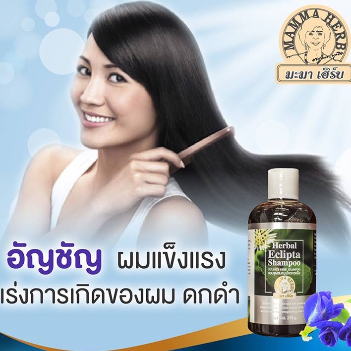 มะมาเฮิร์บแชมพูสมุนไพรกะเม็งผสมอัญชัญ ผมหงอกก่อนวัยผมร่วงง่าย ขนาด 270 ML
