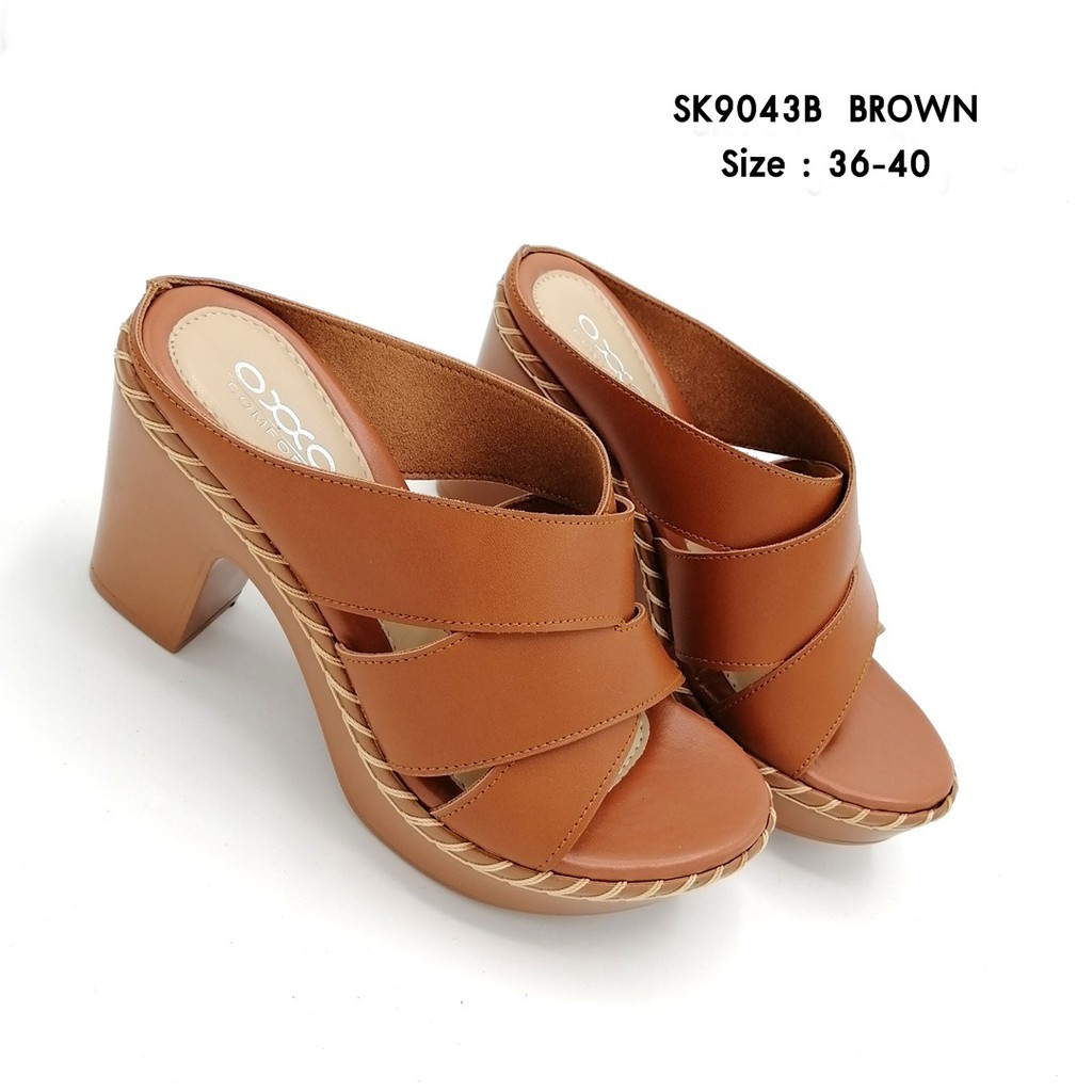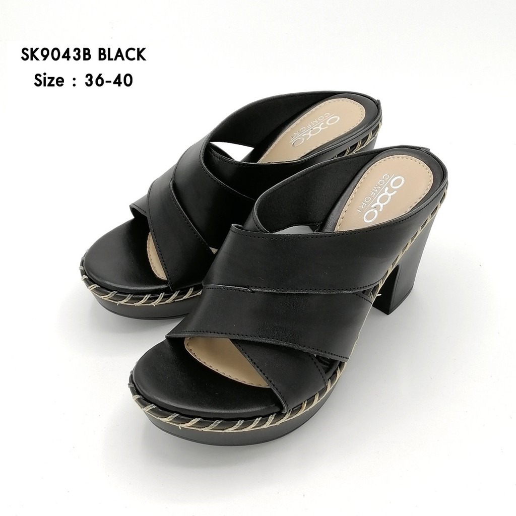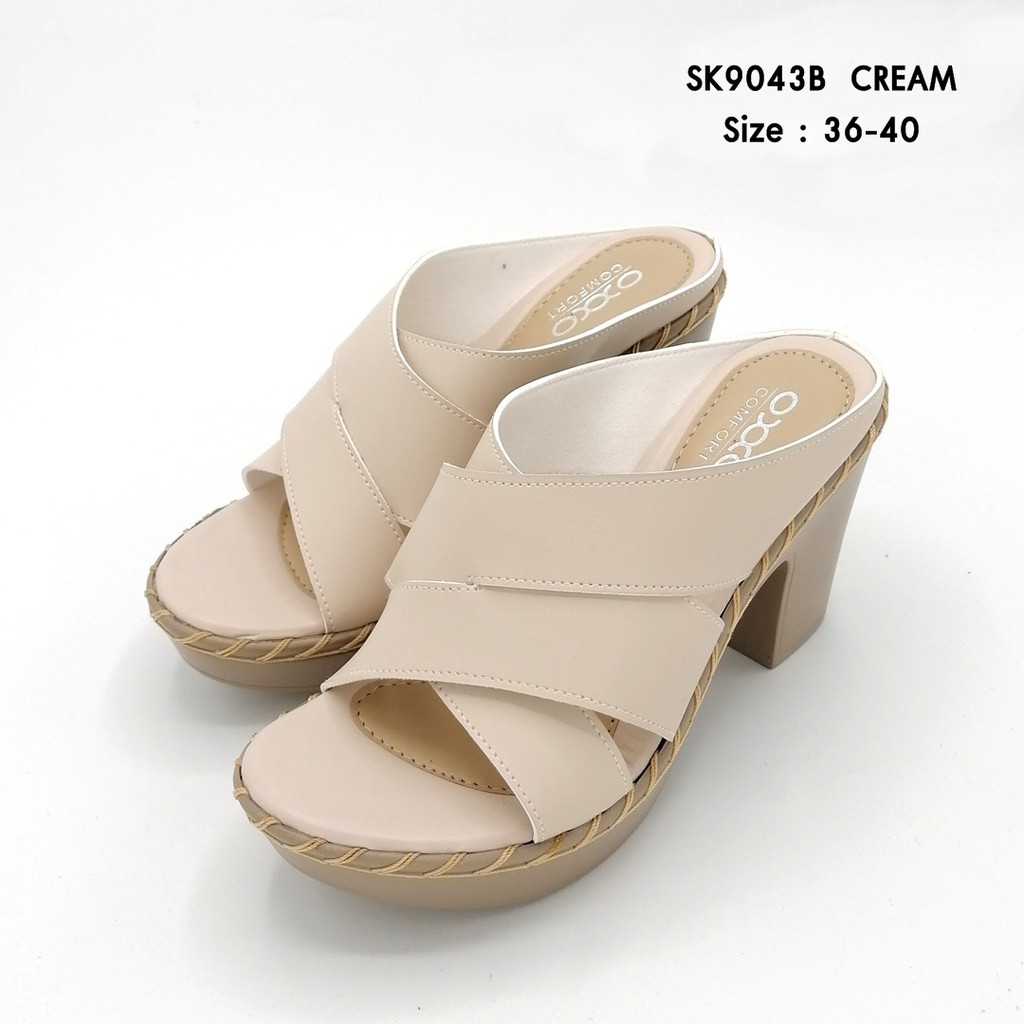 prettycomfort รองเท้าแฟชั่น ส้นสูง แตะเพื่อสุขภาพ ใส่กระชับเก็บรูปเท้า ส้นพียูเย็บเชือก SK9043
