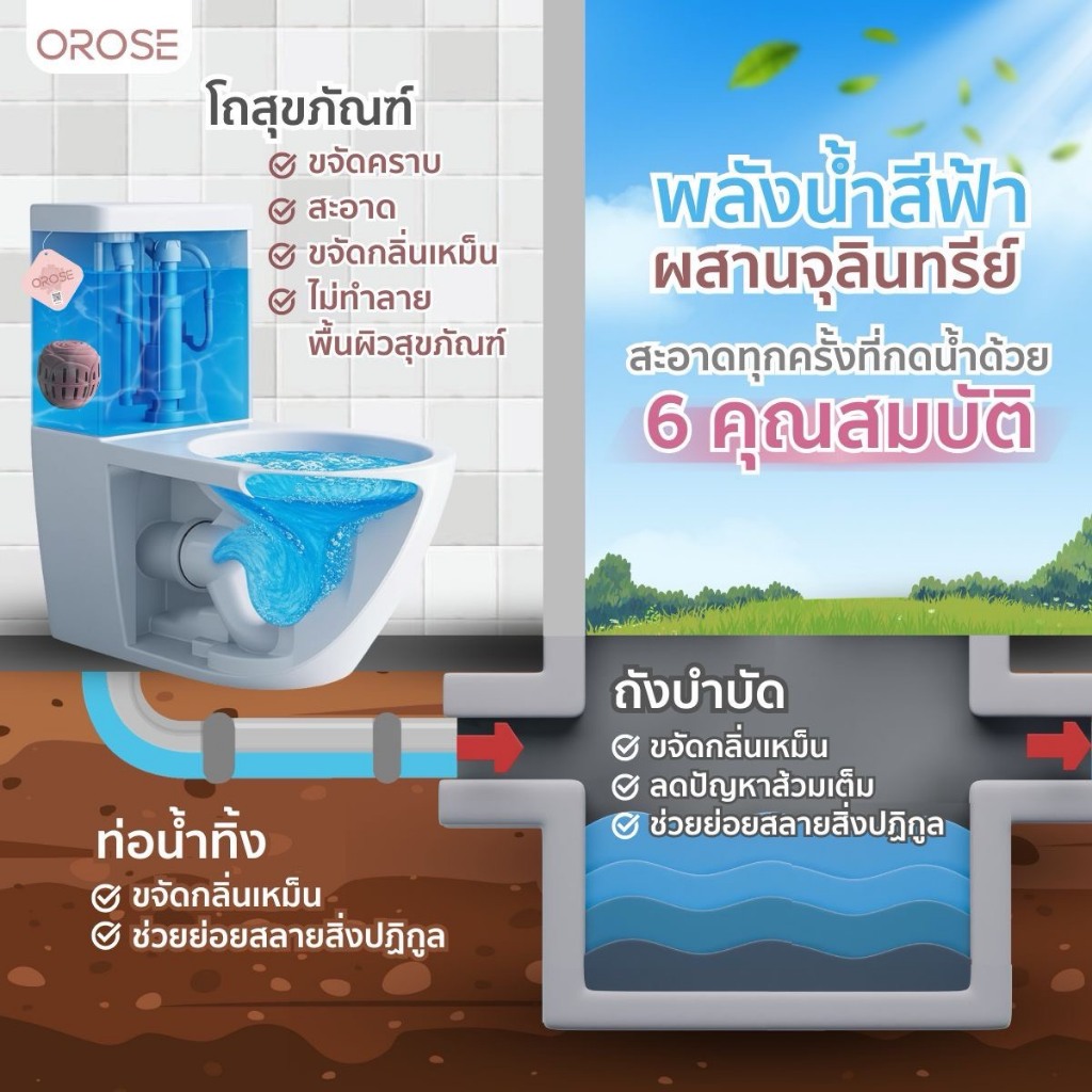 โอโรส ก้อนบลูจุลินทรีย์ พลังน้ำสีฟ้าผสานพลังจุลินทรีย์ ทำความสะอาดโถสุขภัณฑ์