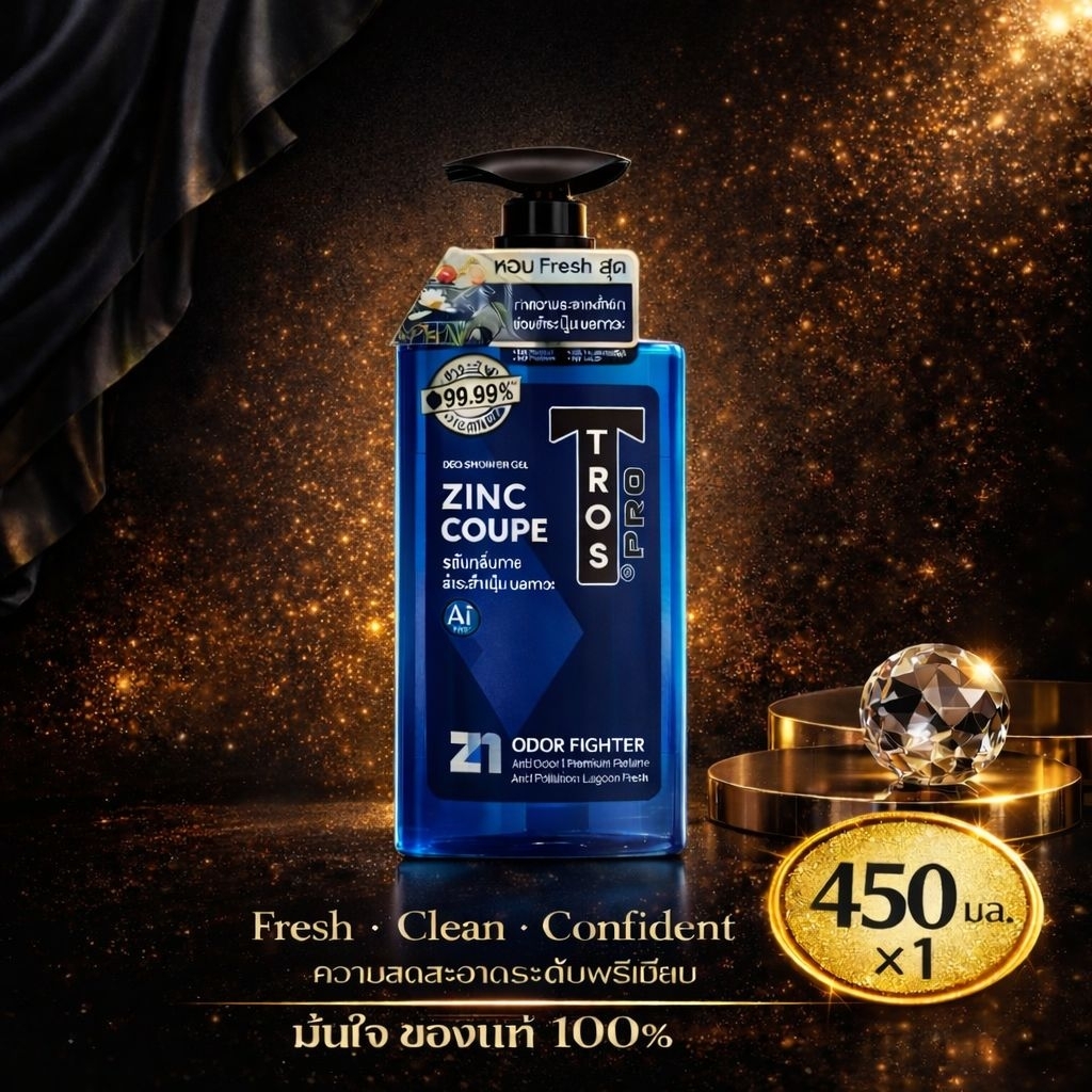 TROS PRO ZINC COUPE DEO SHOWER GEL ผลิตภัณฑ์ครีมอาบน้ำ ทรอส โปร ซิงค์ คูเป้ ดีโอ ชาวเวอร์ เจล 450 มล., สีน้ำเงิน