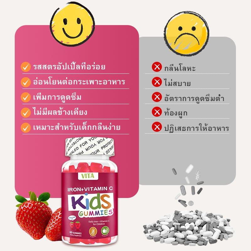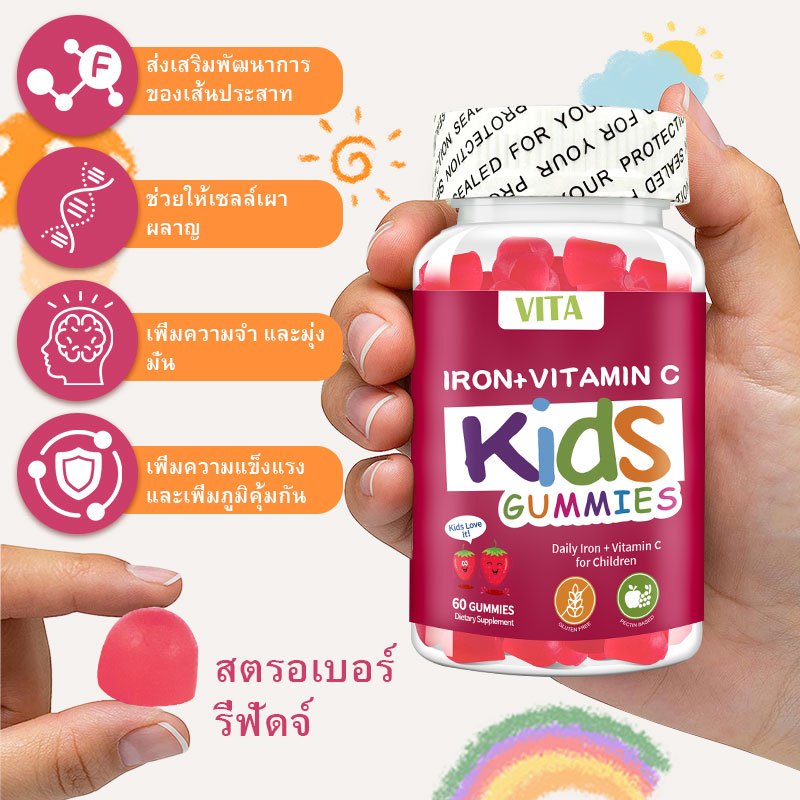 VITA IRON+ VITAMIN C KIDS GUMMIES ไอรอน+วิตามินซีสำหรับเด็ก กัมมี่ วิตามินรวม วิตามินเด็ก อาหารเสริม บํารุงสมอง