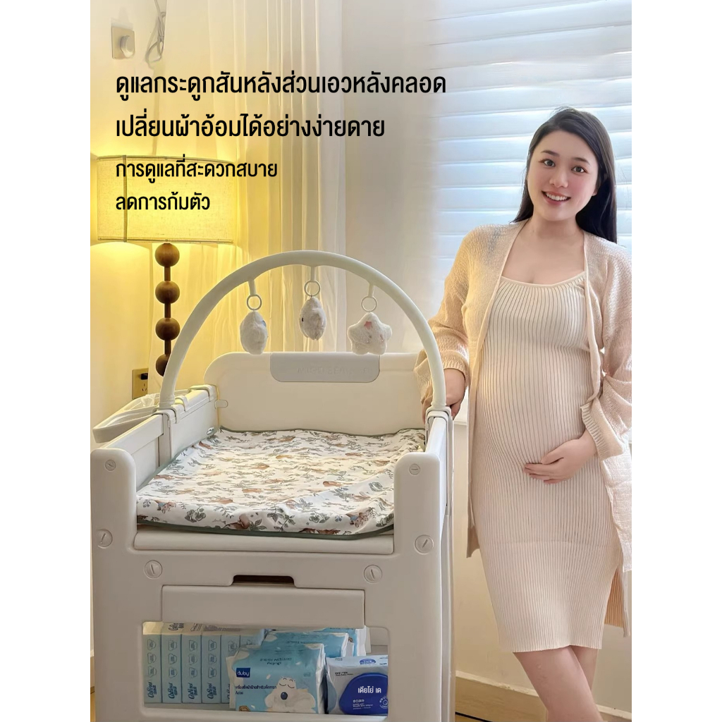 【ใหม่】โต๊ะเปลี่ยนผ้าอ้อม เตียงเปลี่ยนผ้าอ้อม ล้อหมุน ชั้นกว้างพิเศษ มีตะกร้า+เบาะรองนุ่ม เก็บของได้จุใจ