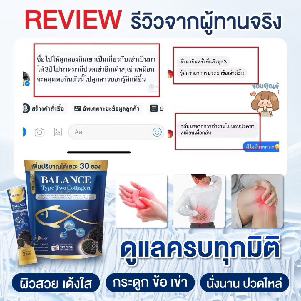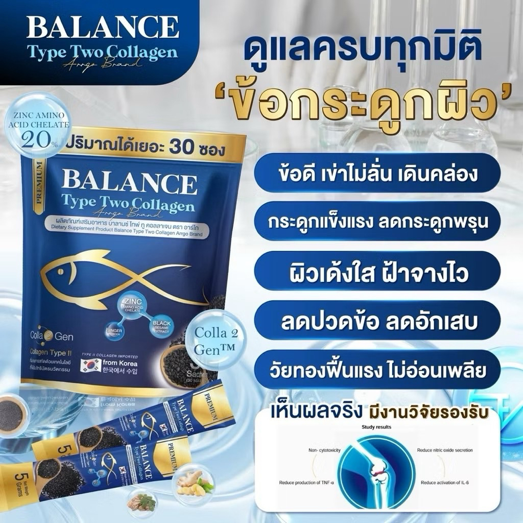 โปร 1 แถม 1 (60ซอง) บางลานซ์ย์ คอลลาเจน Balance Collagen กระดูกพรุน เก๊าท์ รูมาตอย เติมน้ำในข้อ ลดการอักแสบ