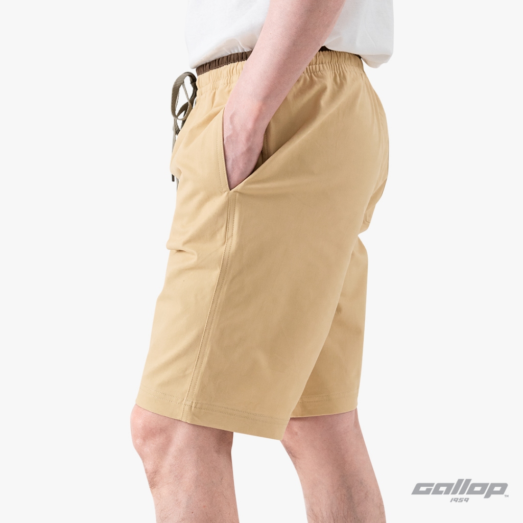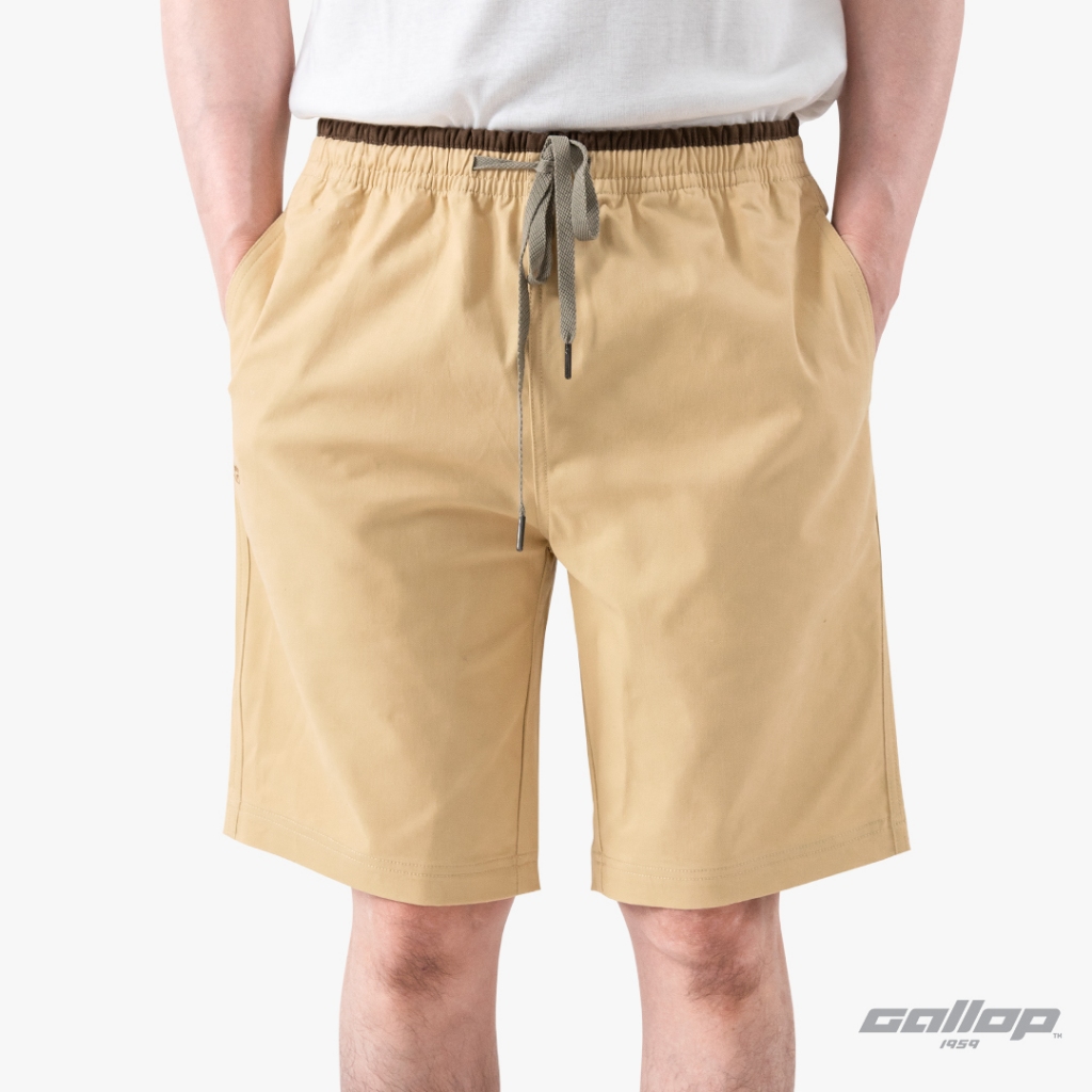GALLOP : CASUAL SHORTS กางเกงขาสั้นต่อขอบผู้ชาย เอวยางยืด มีเชือกรูด สี Khaki - กากี (GAS26SR02001)