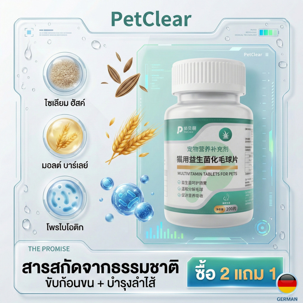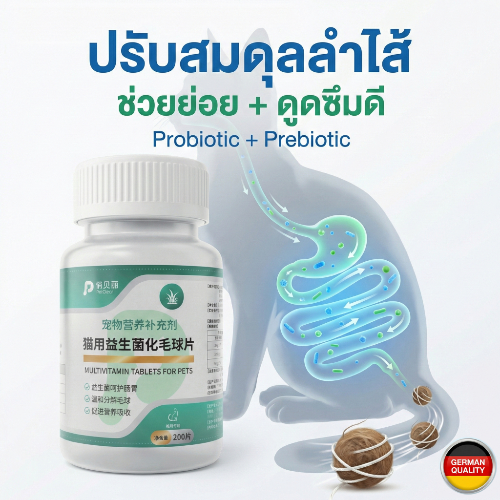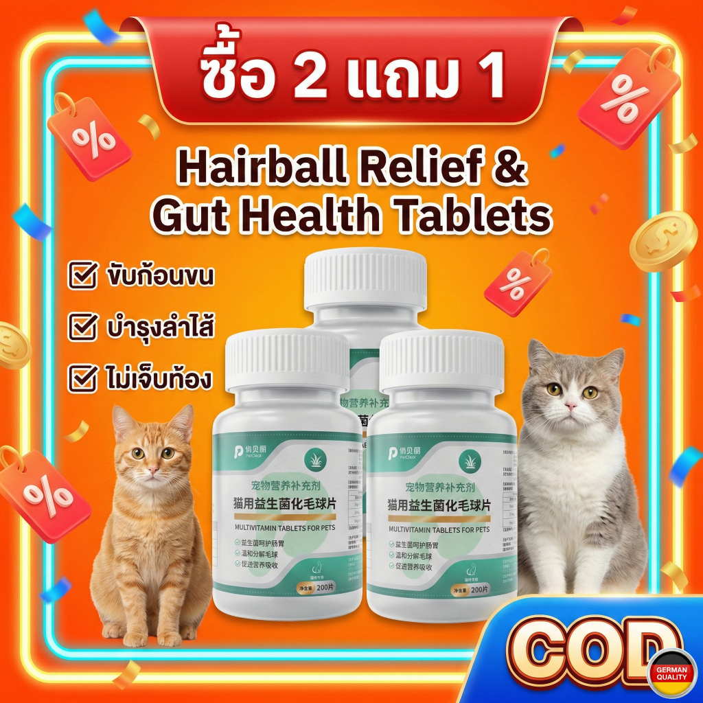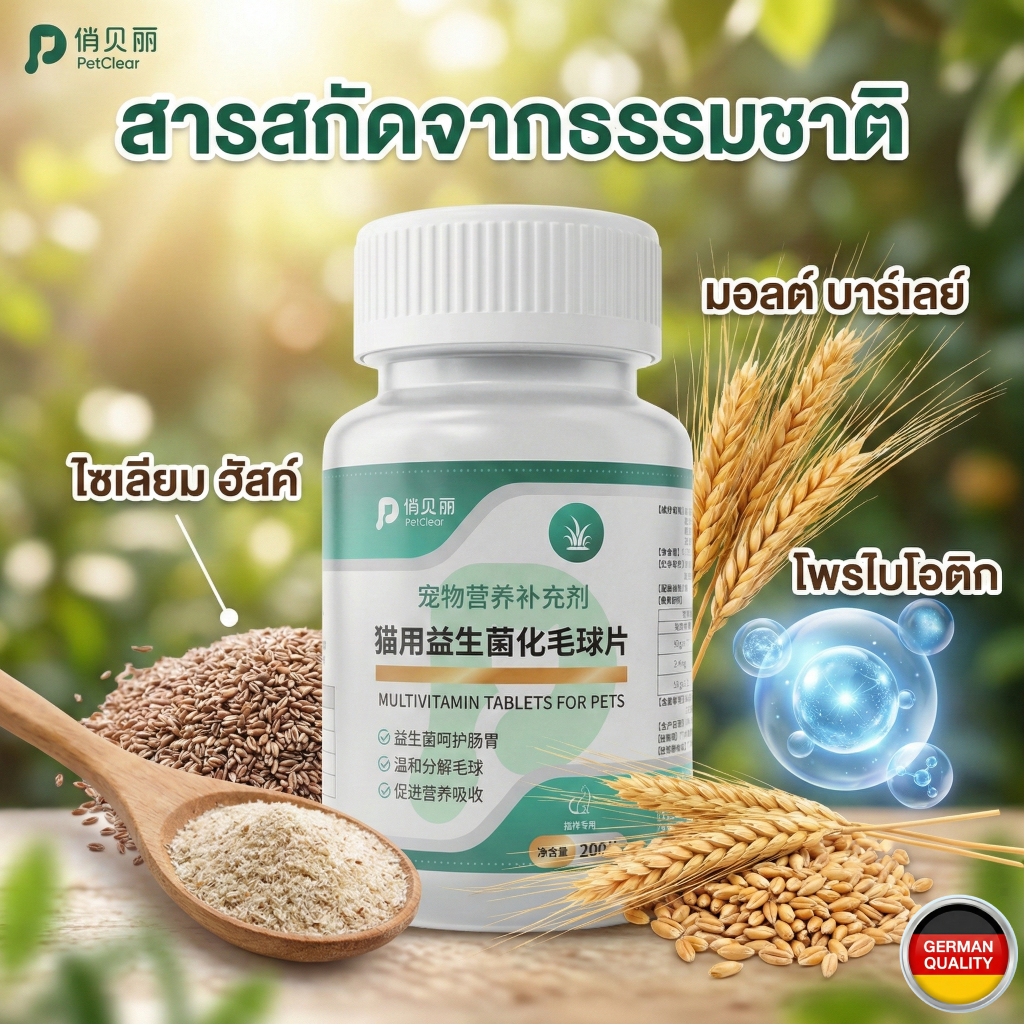 [พร้อมส่ง] PetClear อาหารเสริมแมว ลดการอาเจียนก้อนขน ขับก้อนขน ผสม Probiotic บำรุงกระเพาะ 200 เม็ด