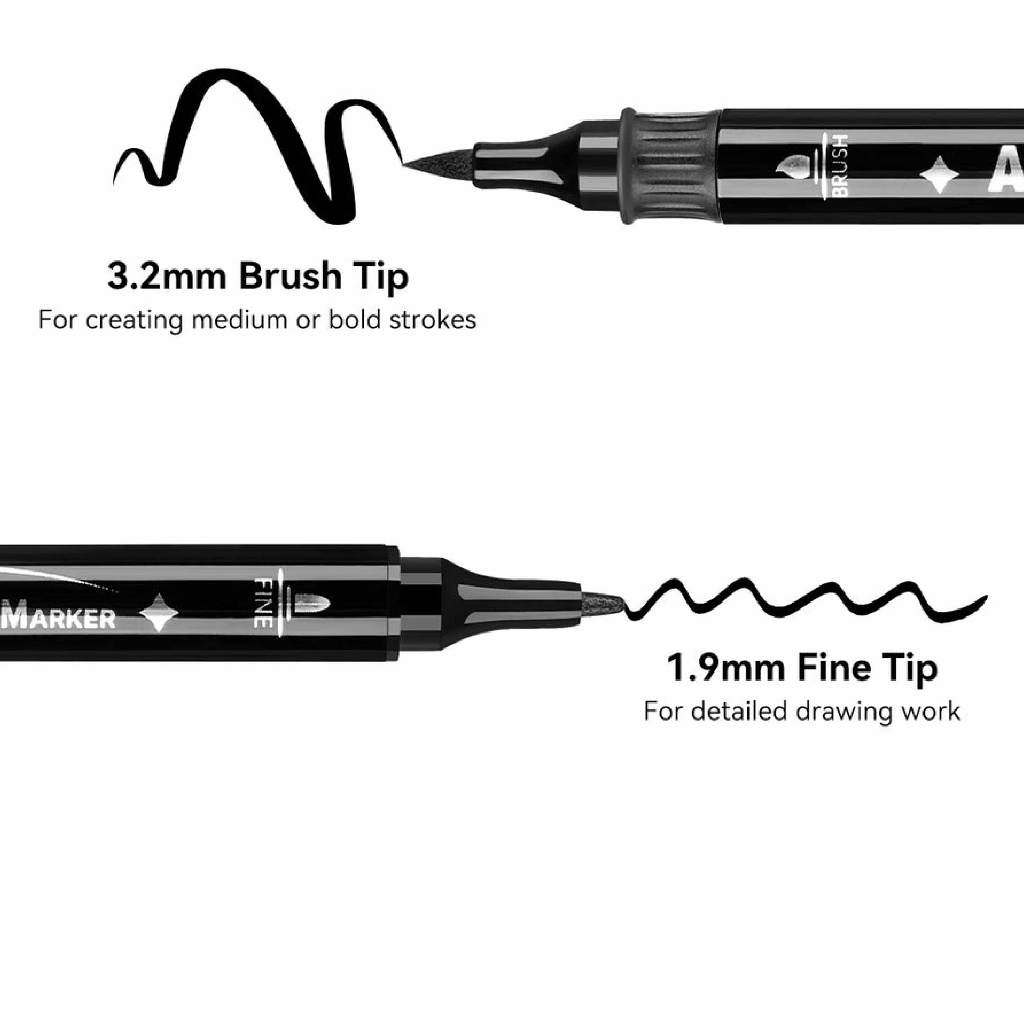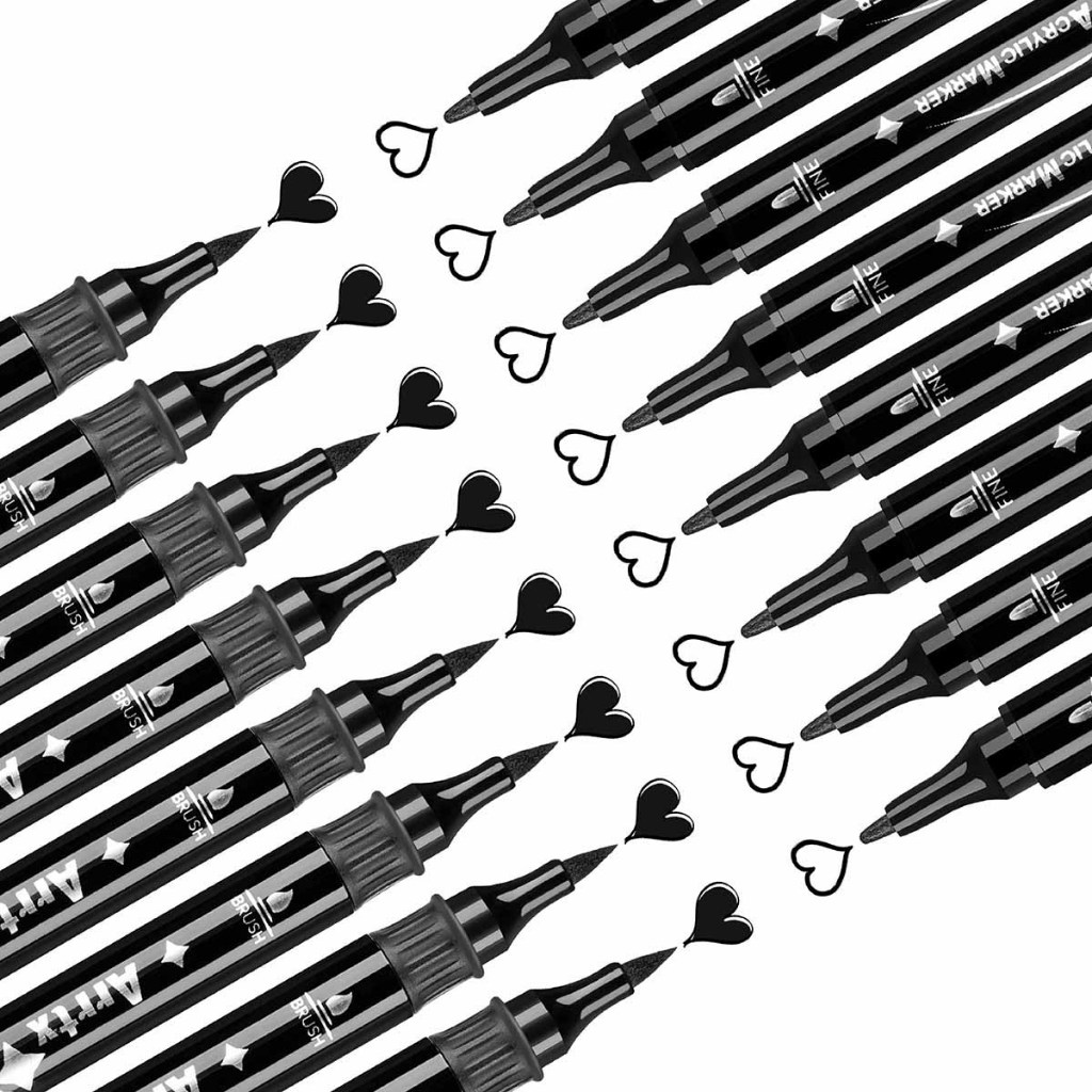 FOLIO ART : Arrtx ปากกาอะคริลิคมาร์คเกอร์ เซตสีดำ 8 แท่ง (Brush Tip+ Fine Tip) รหัส 94152