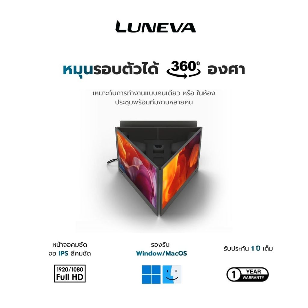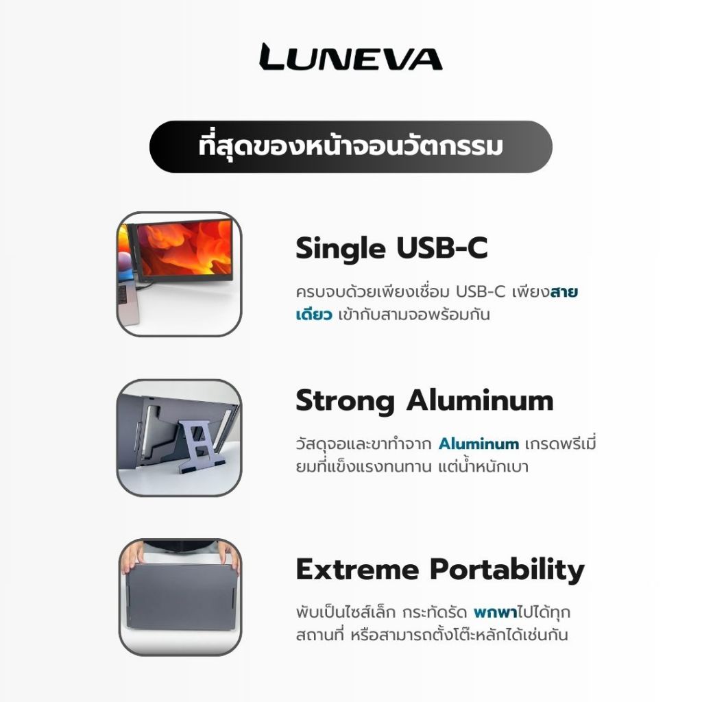 LUNEVA Dual Pro Monitor - จอเสริมโน้ตบุ๊ก 2 จอ พกพาได้ 15.6 นิ้ว ใช้ได้กับ Mac/Windows จอพับได้ - Aluminium แข็งแรงเบา