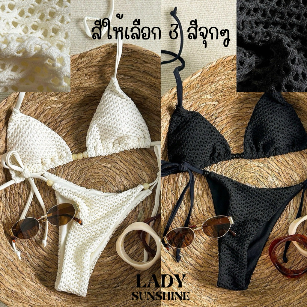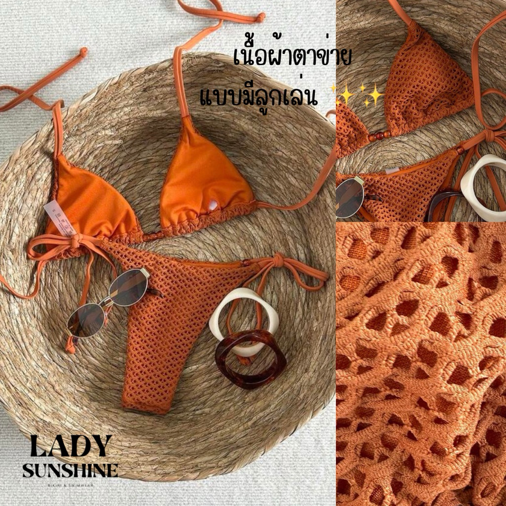 ส่งจากไทย🇹🇭🧡บิกินี่ตาข่ายแบบผูก ป๊อปสุดๆรับซัมเมอร์นี้ พร้อมส่ง 3 สี