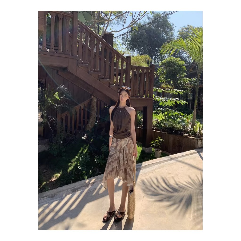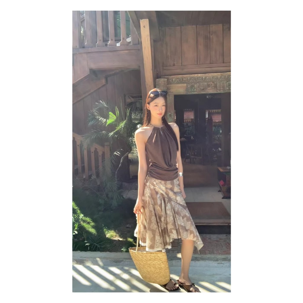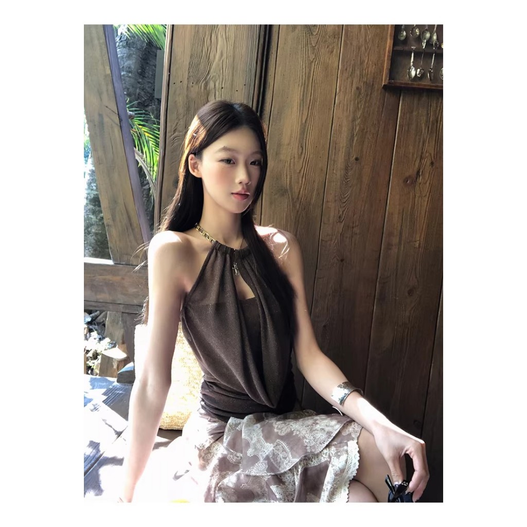 KOKOMI สาวร้อนสวม Halter Design Slim-fit สั้นแขนกุด Halterneck Top