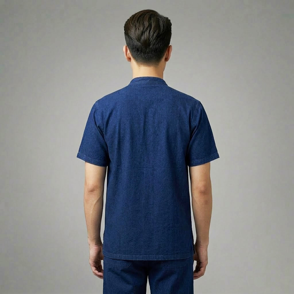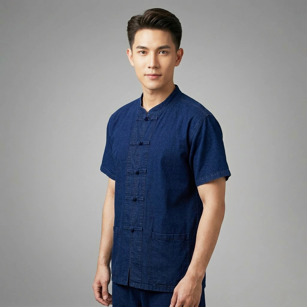 MEN-07 ม่อฮ่อมคอจีน กระดุมจีน แขนสั้น