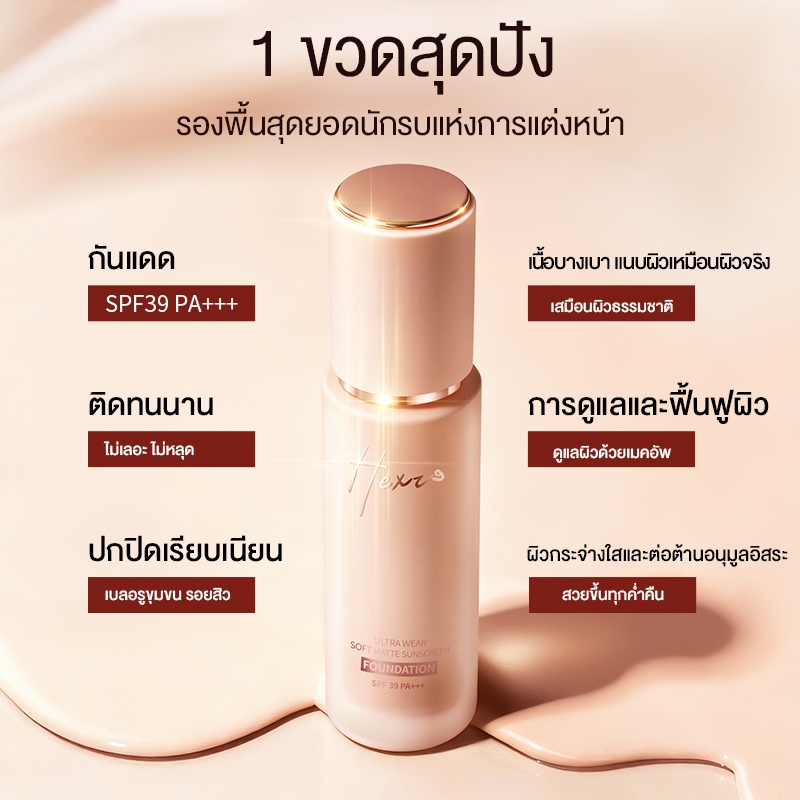 [COD]HEXZE รองพื้น ผสมกันแดด SPF39 PA+++ รองพื้นกันน้ำ ปกปิดเรียบเนียน คุมมัน เนื้อบางเบา ติดทนนาน