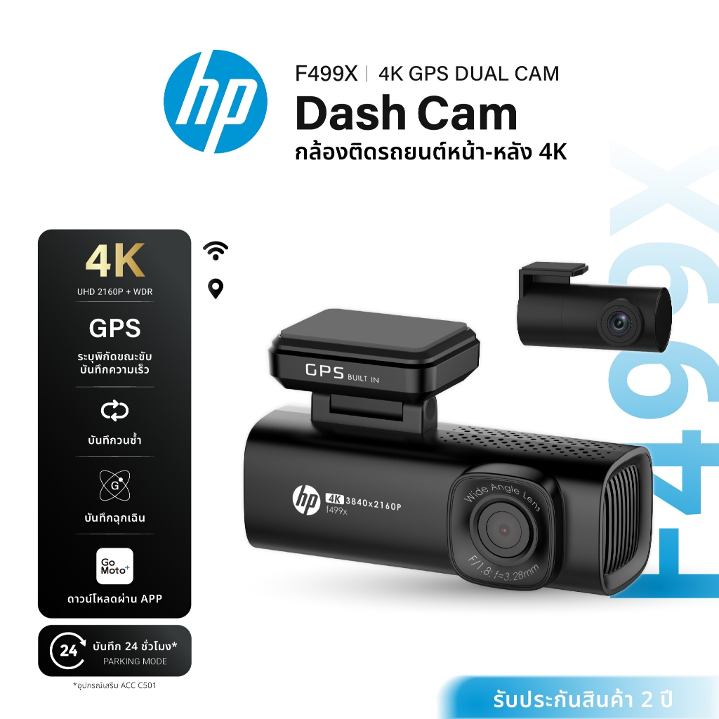 HP F499X Dashcam กล้องหน้าติดรถยนต์ 4K 2160P WDR GPS Wi-Fi กล้องติดรถยนต์ มุมกว้าง 140 องศา บันทึกวนซ้ำ ควบคุมผ่าน APP