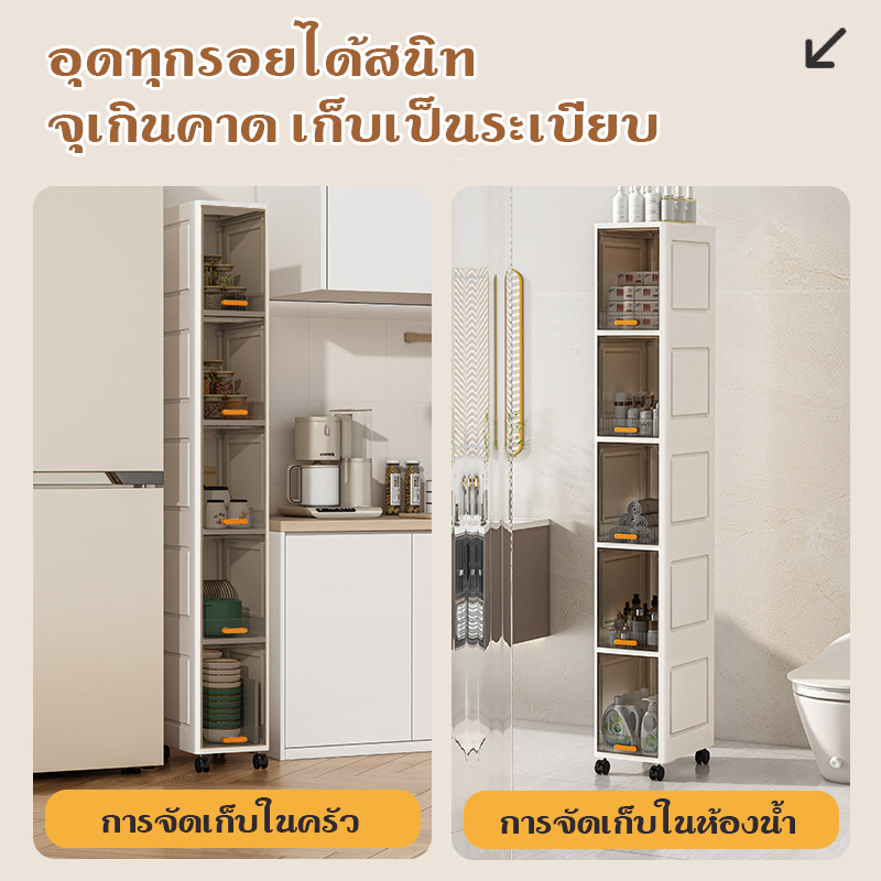 ตู้เก็บของขนาดแคบ สำหรับช่องว่างแคบในบ้าน เหมาะห้องนั่งเล่น/นอน/น้ำ/ส้วม ตู้เล็กมีล้อเคลื่อนย้ายง่าย มั่นคงไม่ล้ม