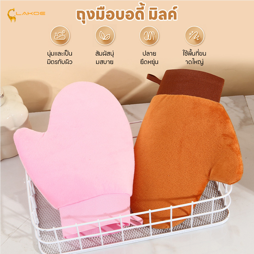 LAKOEMALL ถุงมือทาครีม ถุงมือเกลี่ยโทนอัพ ผ้าสองชั้น ถุงมือโลชั่นบำรุงผิวกาย ทาให้ทั่ว ถุงมือพอกผิว