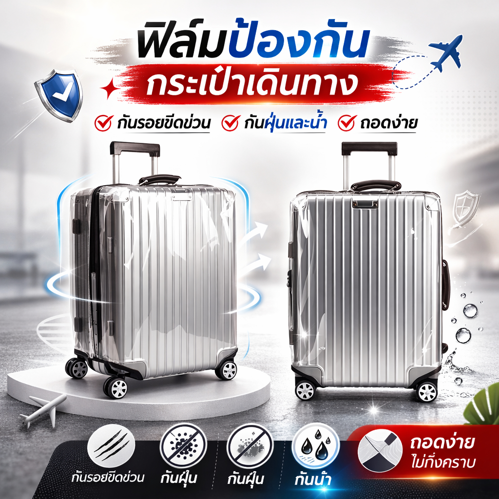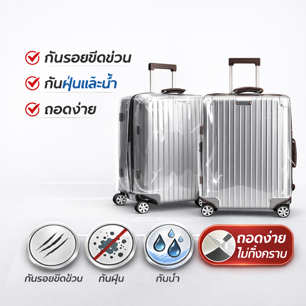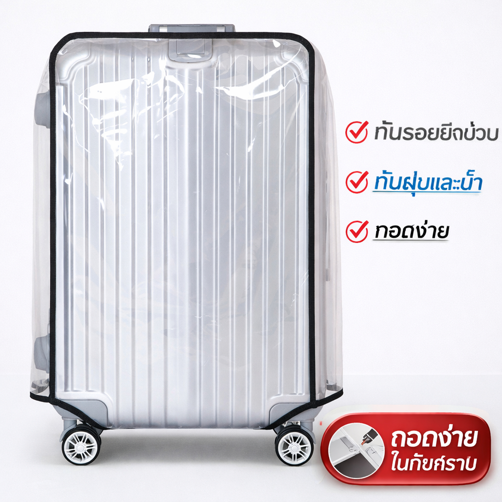 ปลอกคลุมกระเป๋าเดินทางใส กันฝุ่น กันน้ำ กันรอยขีดข่วน ปกป้องกระเป๋าเดินทาง ใช้งานง่าย ทนทาน