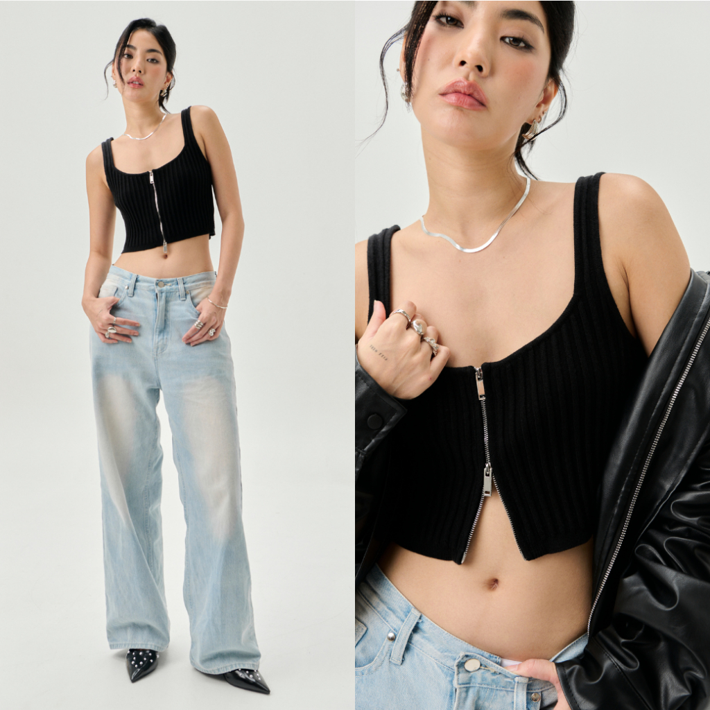Felt.bkk Riga Zip Crop Top เสื้อแขนกุดคร๊อปซิปกลางสามารถรูดได้ทั้ง บน และ ล่าง