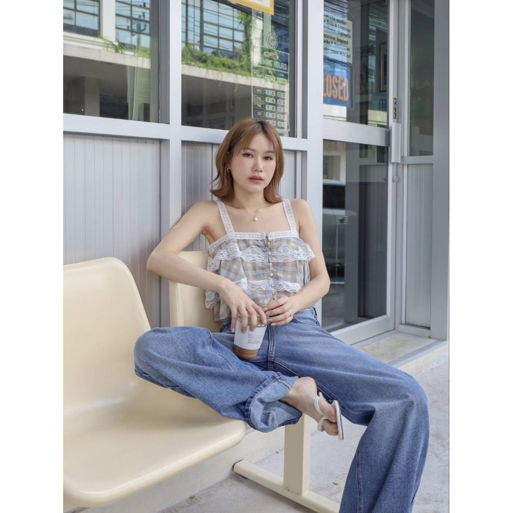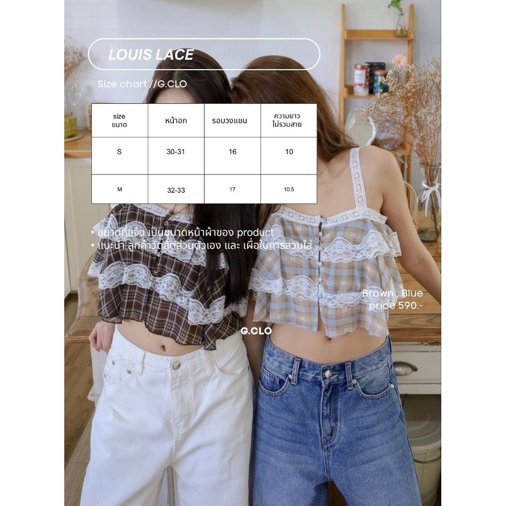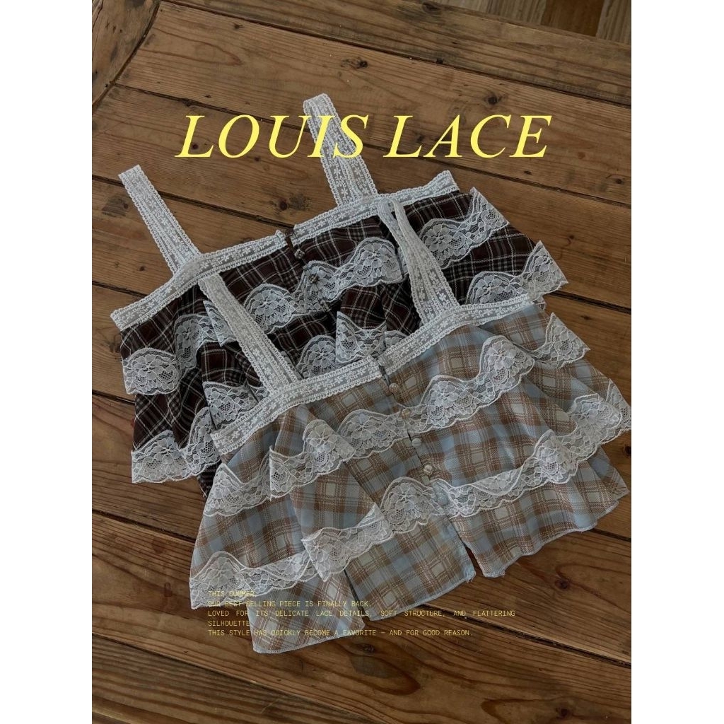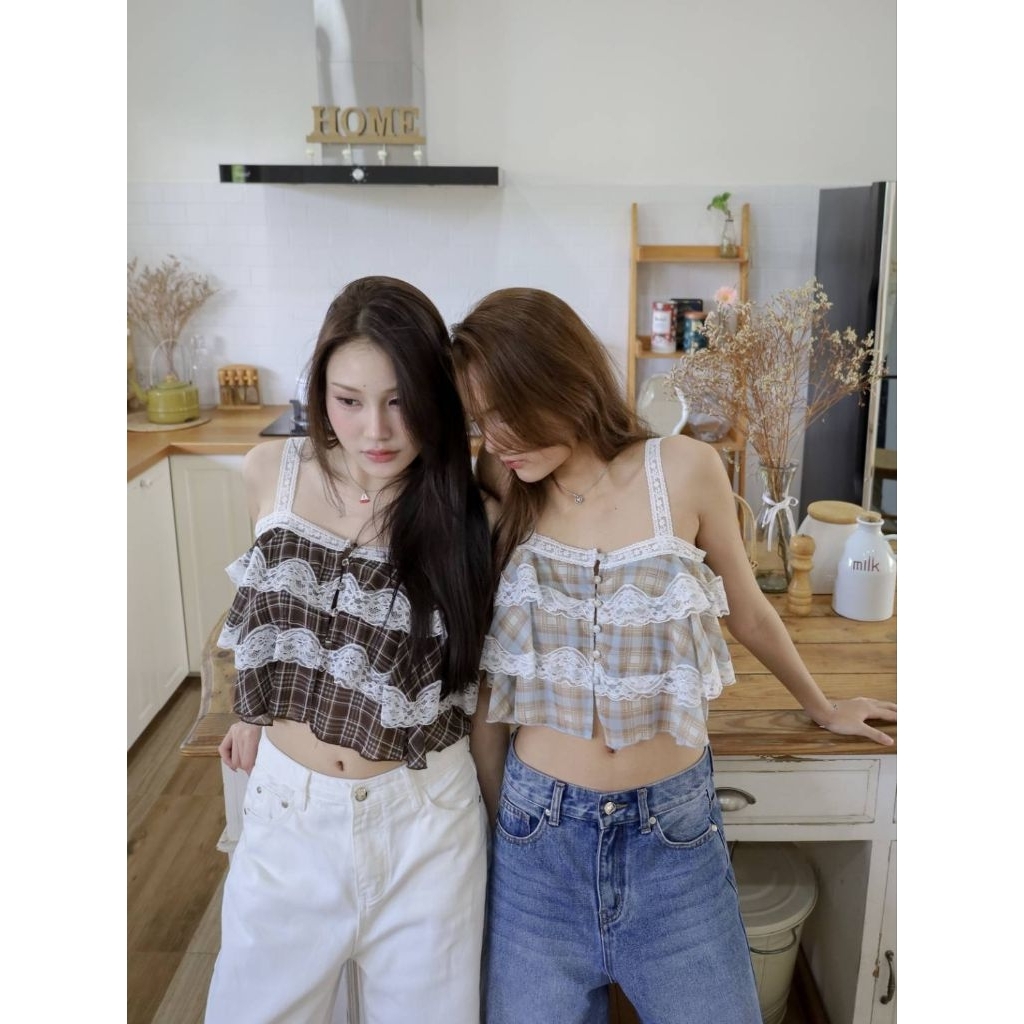 GLAMCLOTHES LOUIS LACE เสื้อครอปสายเดี่ยวลูกไม้ลายตาราง ดีไซน์น่ารักแบบมีคลาส ใส่แล้วได้ฟีล vintage นิดๆ