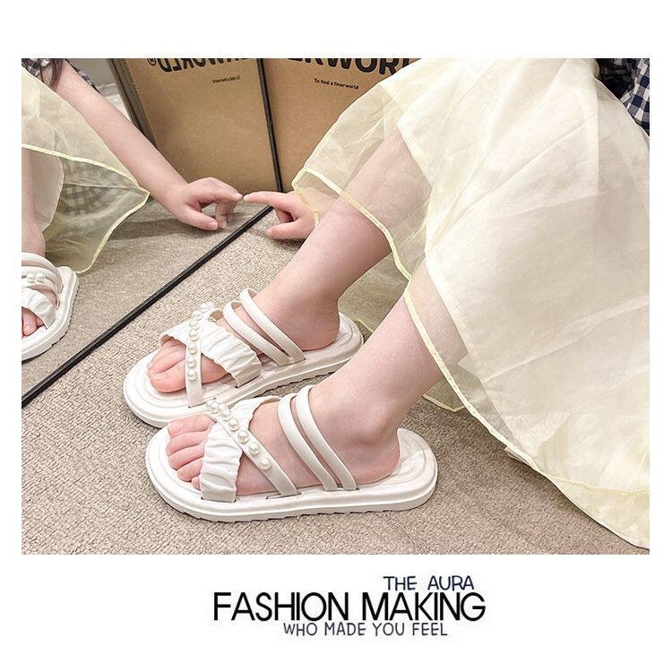 รองเท้าแตะเด็กผู้หญิงรุ่นใหม่สำหรับฤดูร้อน ประดับมุก พื้นหนา สวมใส่สบาย ทันสมัยและใช้งานได้หลากหลาย