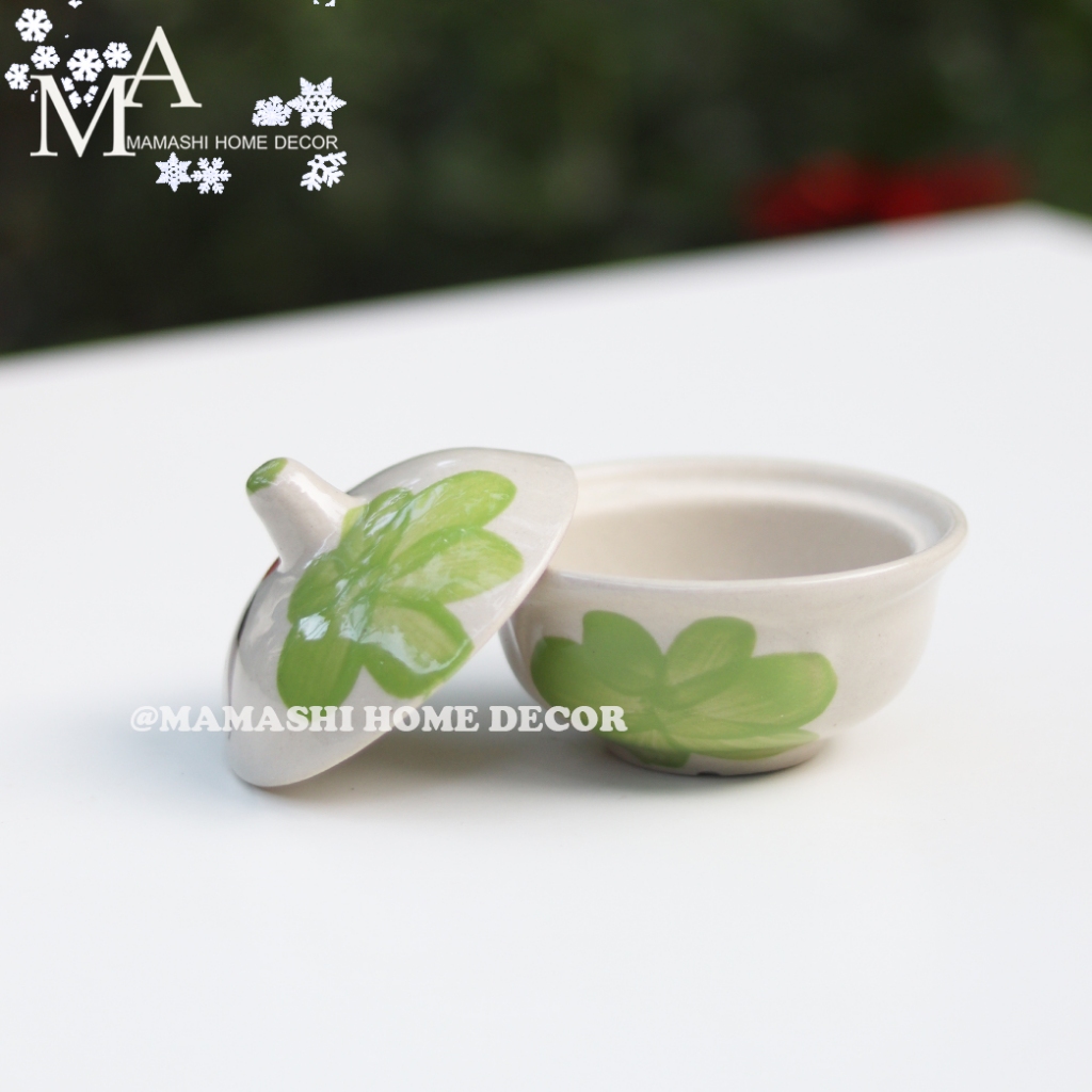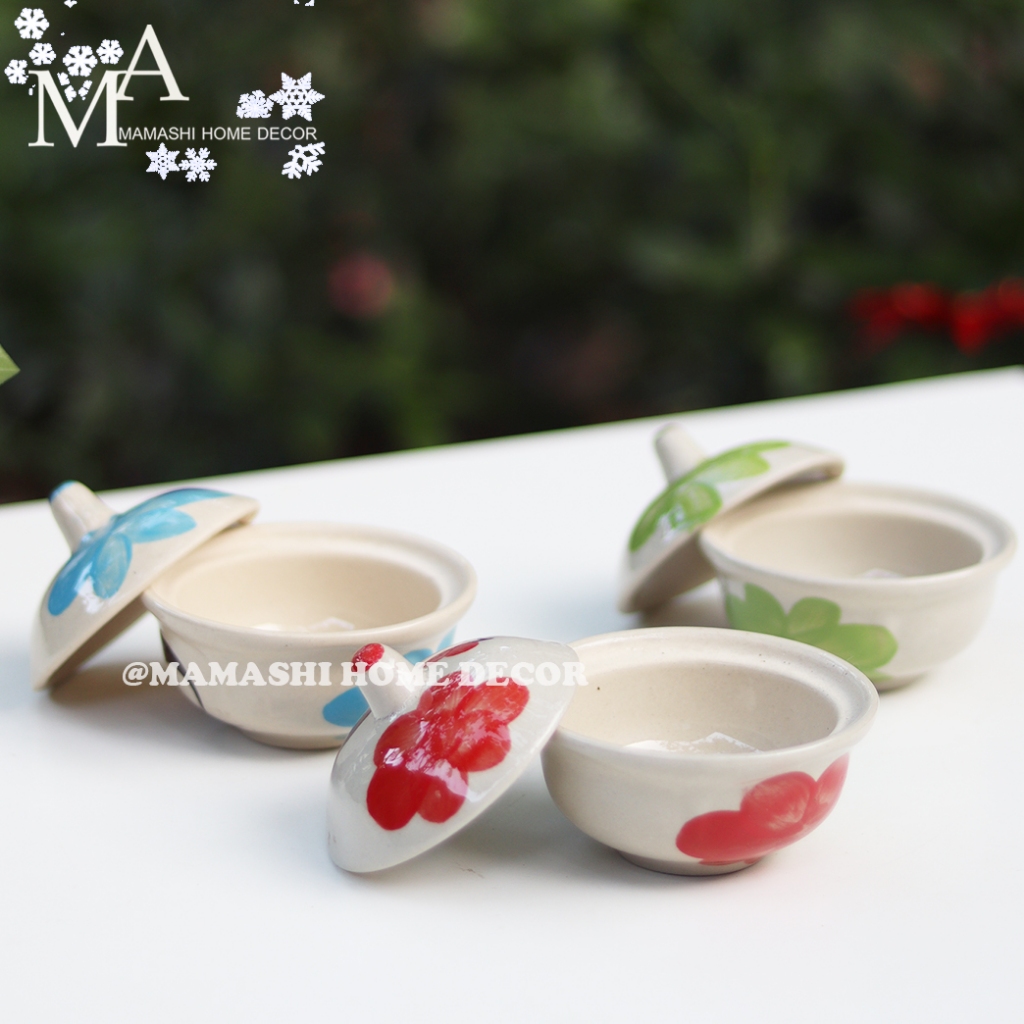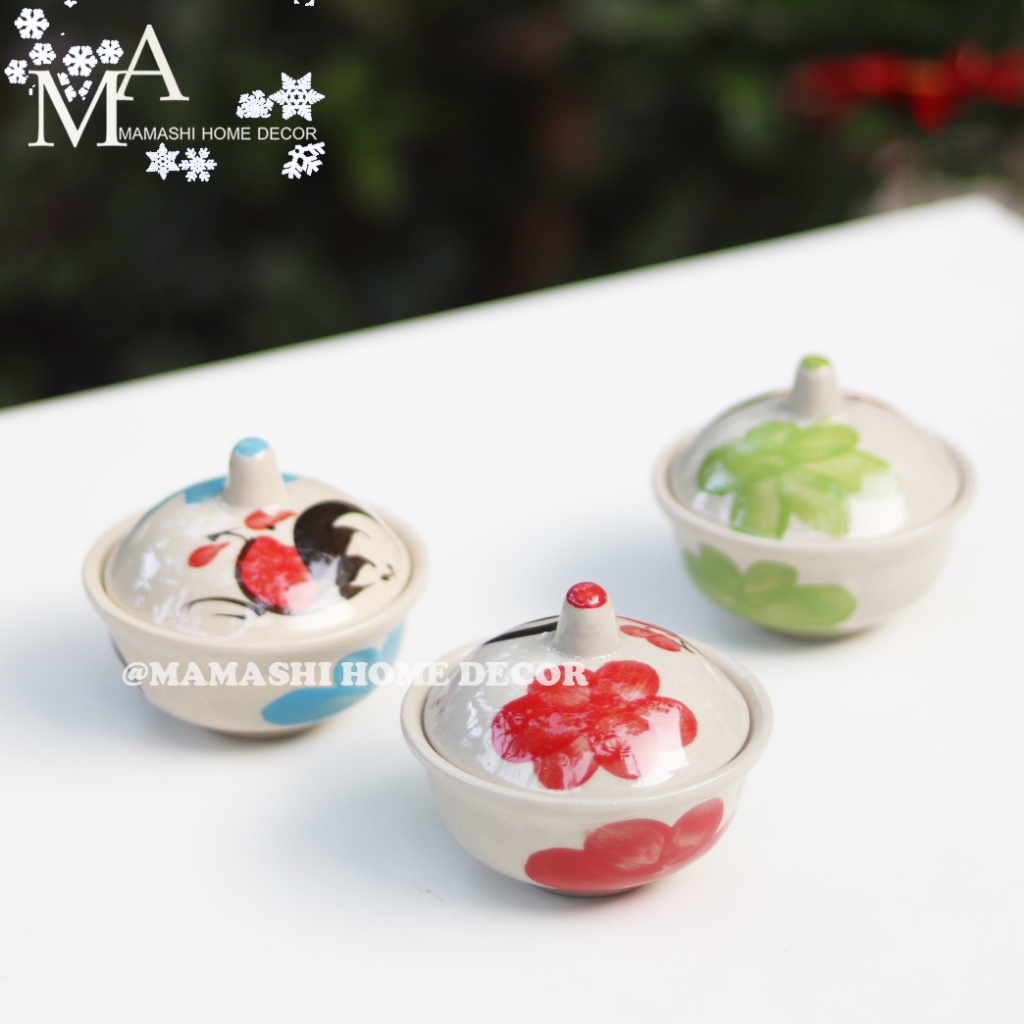 ถ้วยเซรามิคตราไก่ ถ้วยน้ำจิ้ม พร้อมฝาปิด ขนาด 3.5 นิ้ว ลายไก่ มี 3 สี