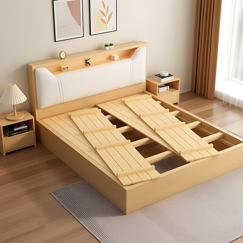เตียงไม้ 5/6 ฟุต หัวเตียงนุ่ม ทันสมัยเรียบง่าย เตียงไม้ เบาะพิงนุ่มสบาย เนื้อไม้คุณภาพดี